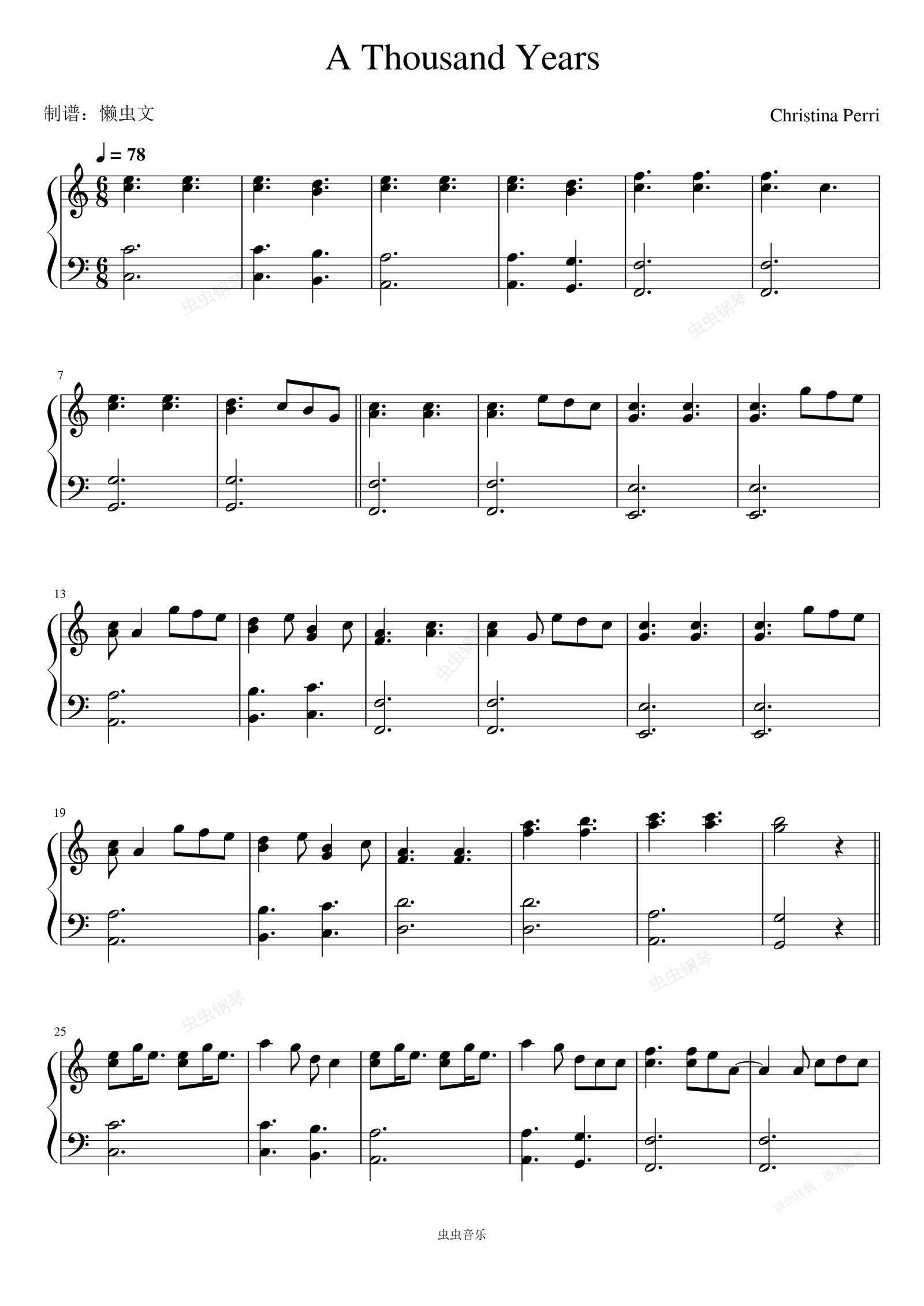 钢琴谱:A Thousand Years(暮光之城)
