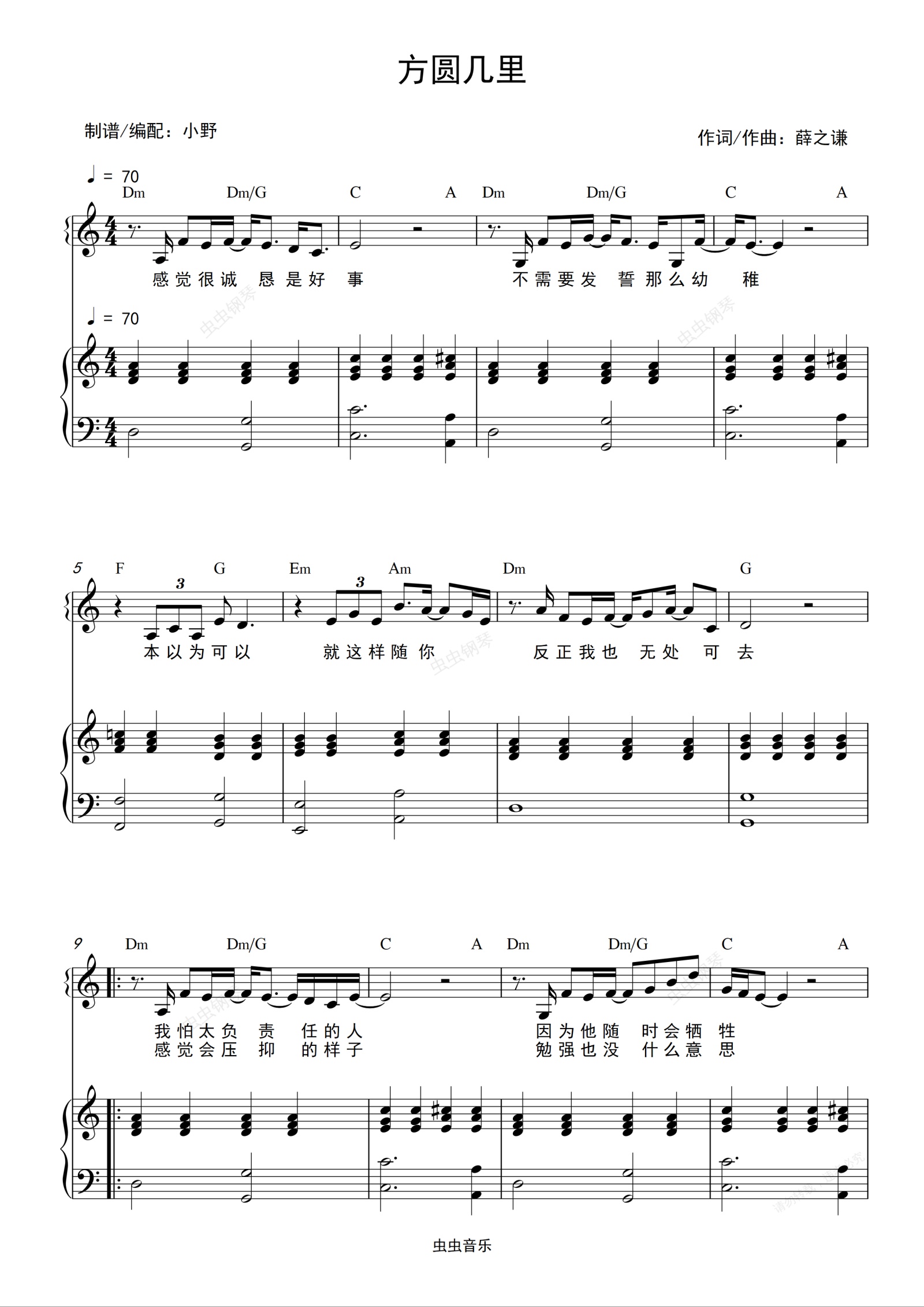 钢琴谱:方圆几里(和弦弹唱版)