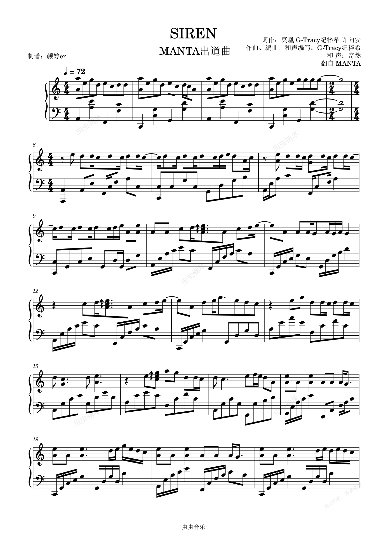 钢琴谱:《SIREN》-----MANTA曼塔出道曲
