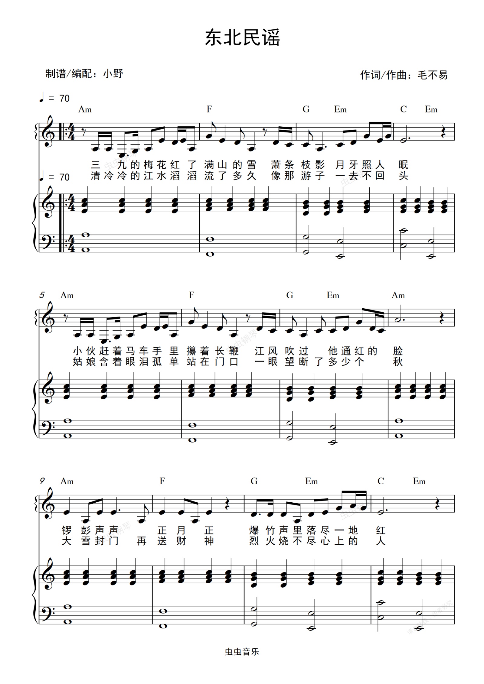 钢琴谱:东北民谣(和弦弹唱版)
