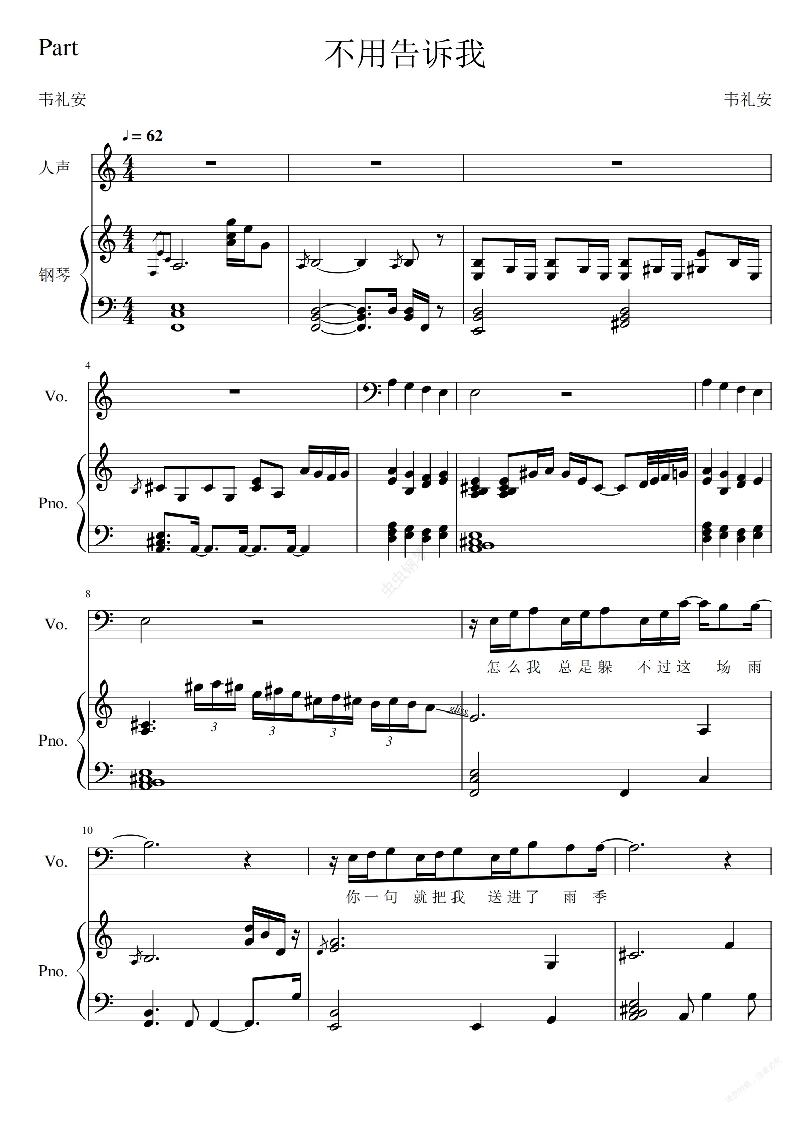 钢琴谱:不用告诉我