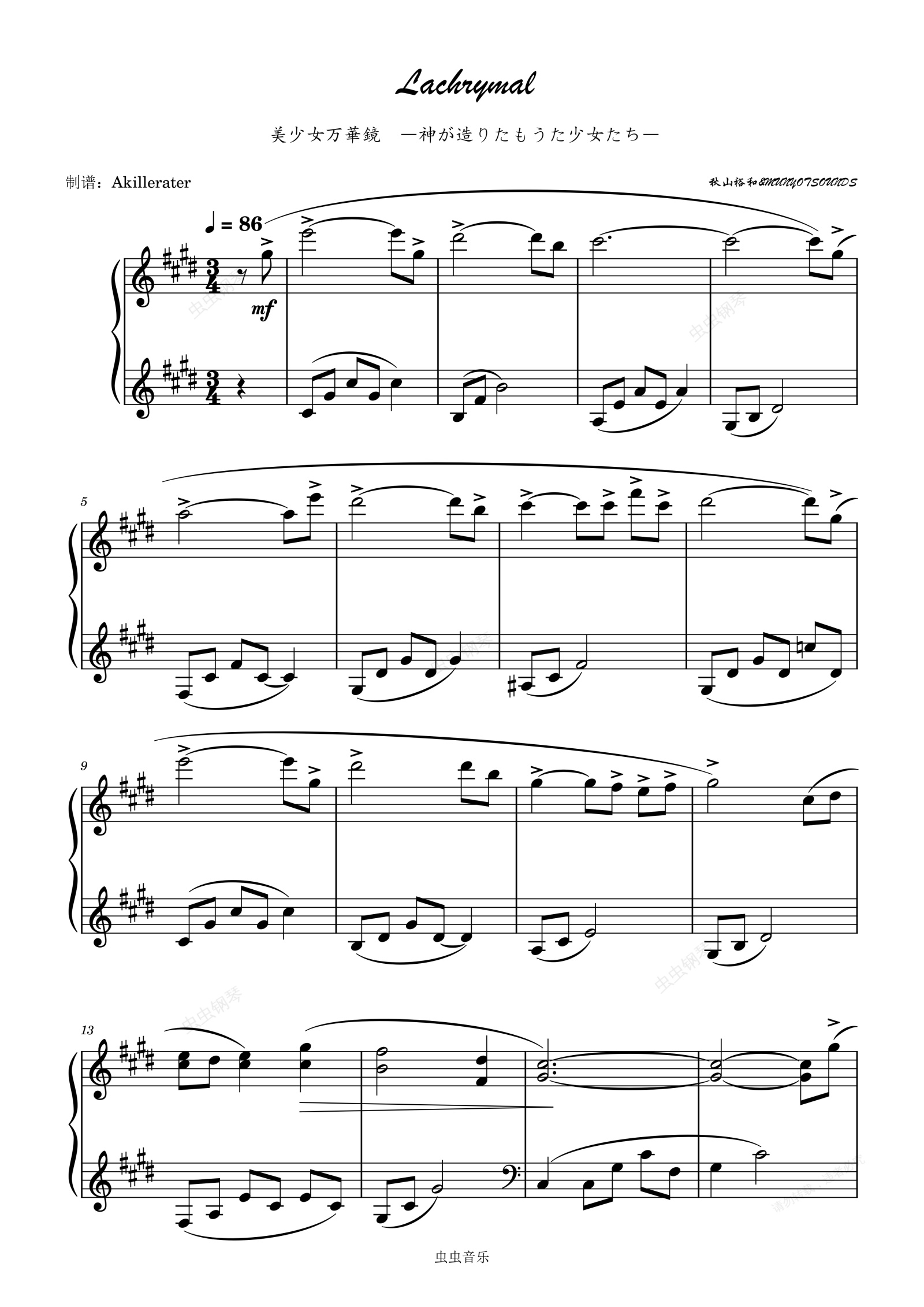 钢琴谱:Lachrymal《美少女万华镜 - 神明所创造的少女们》