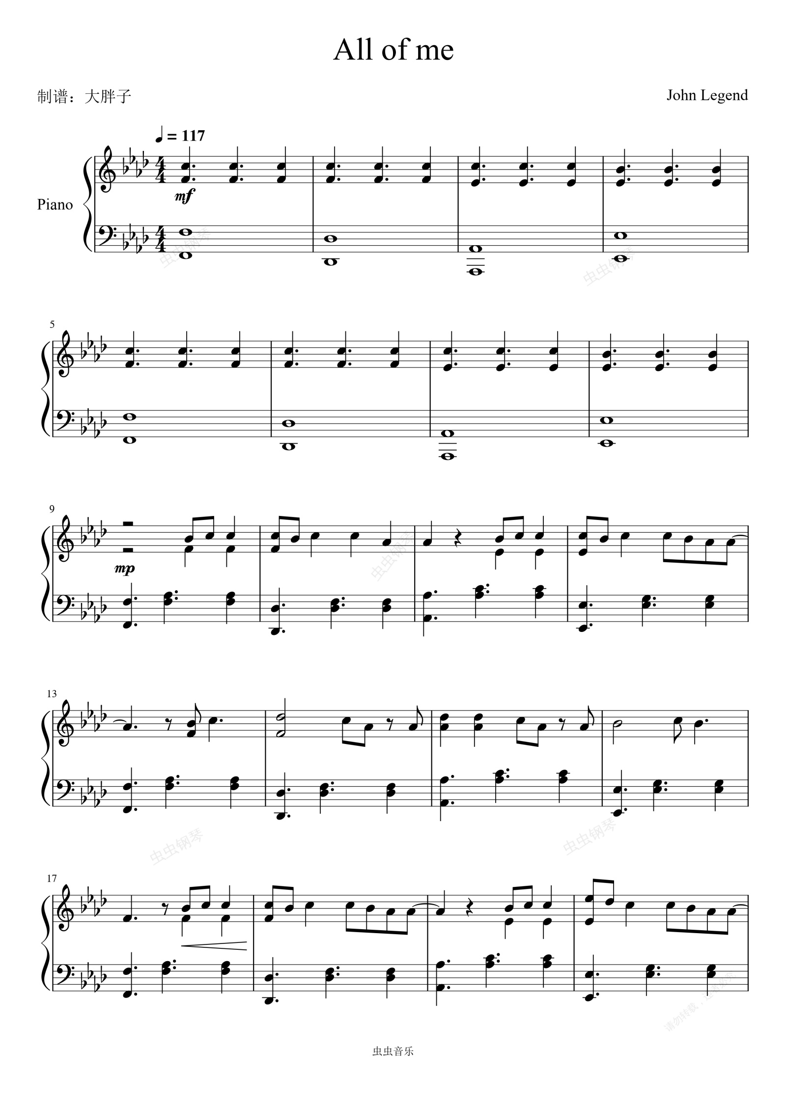 钢琴谱:All of me