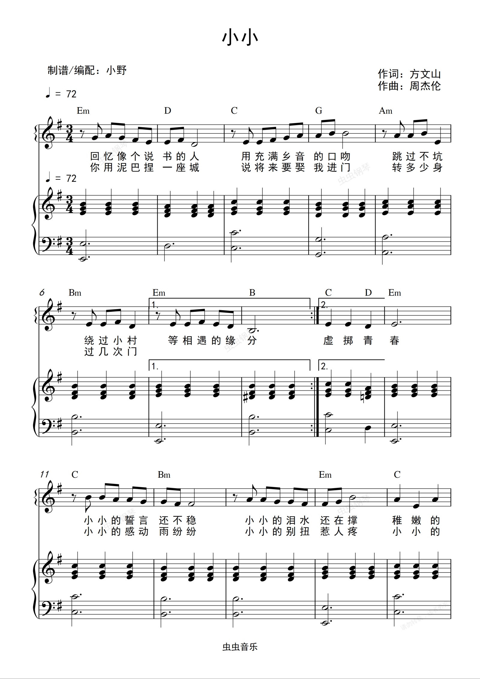 钢琴谱:小小(和弦弹唱版)