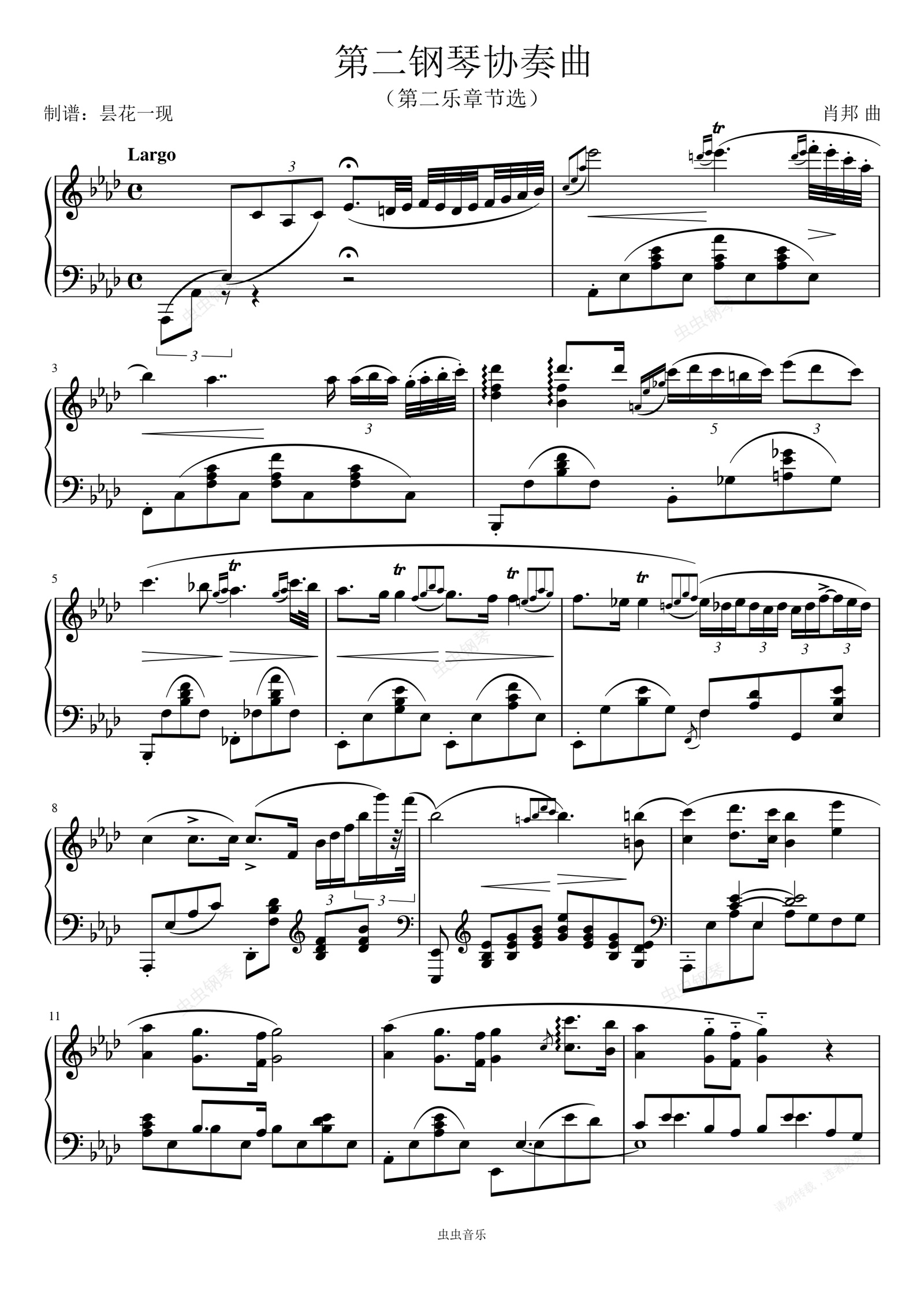 钢琴谱:肖邦第二钢琴协奏曲 (第二乐章节选)