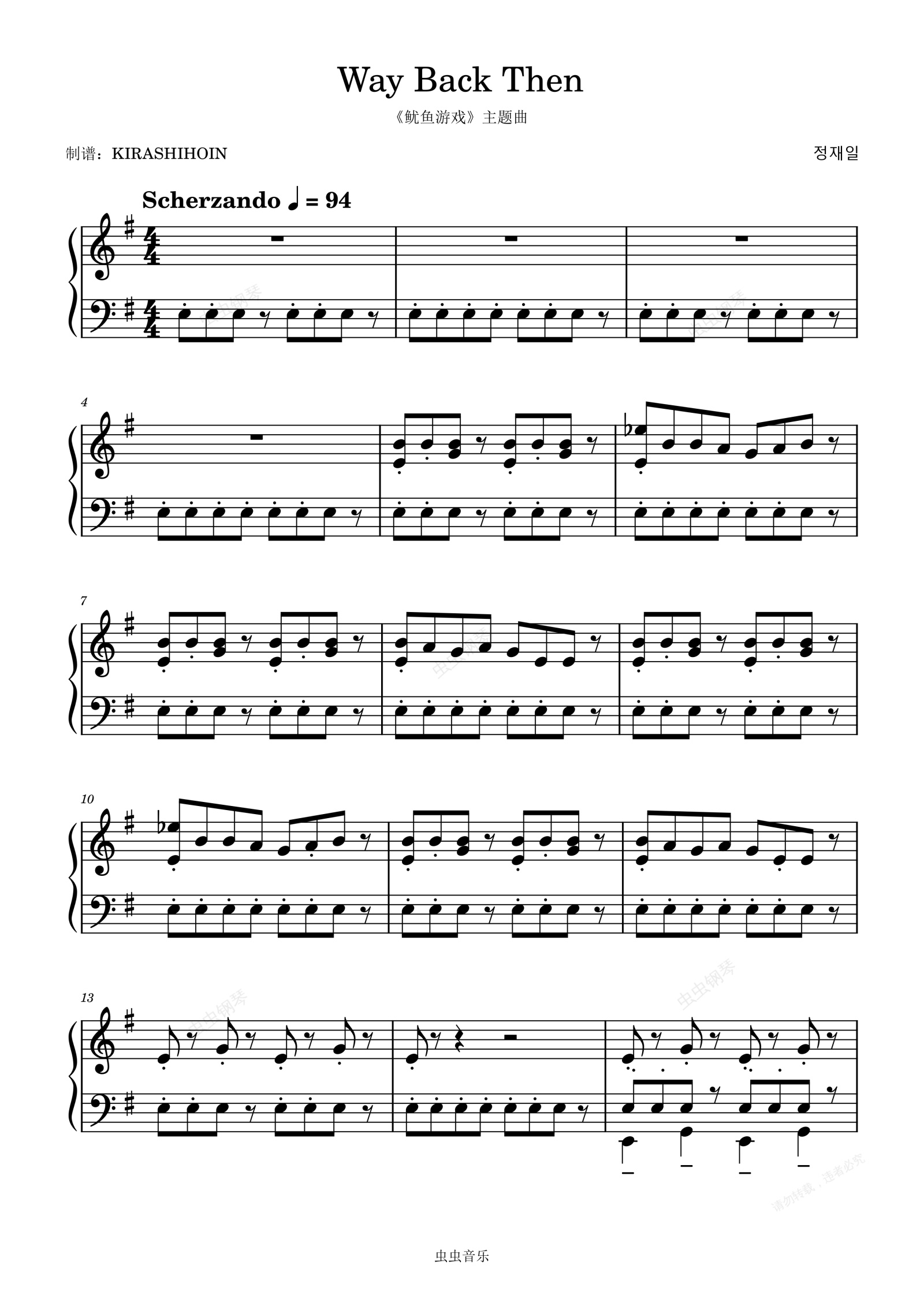 钢琴谱:Way Back Then(韩剧《鱿鱼游戏》主题曲)