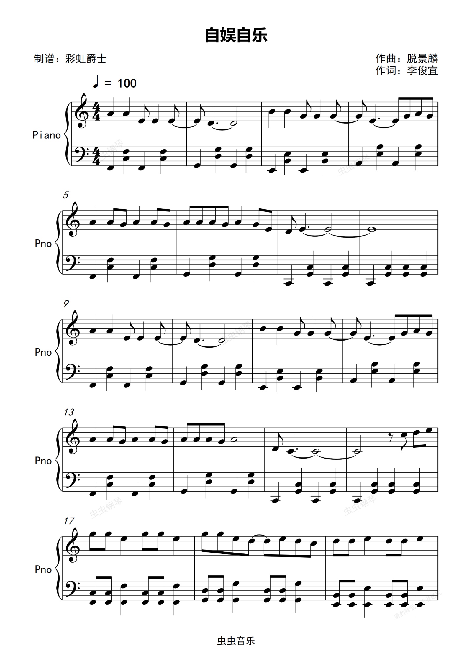 钢琴谱:自娱自乐 C调简单版 抖音 金志文
