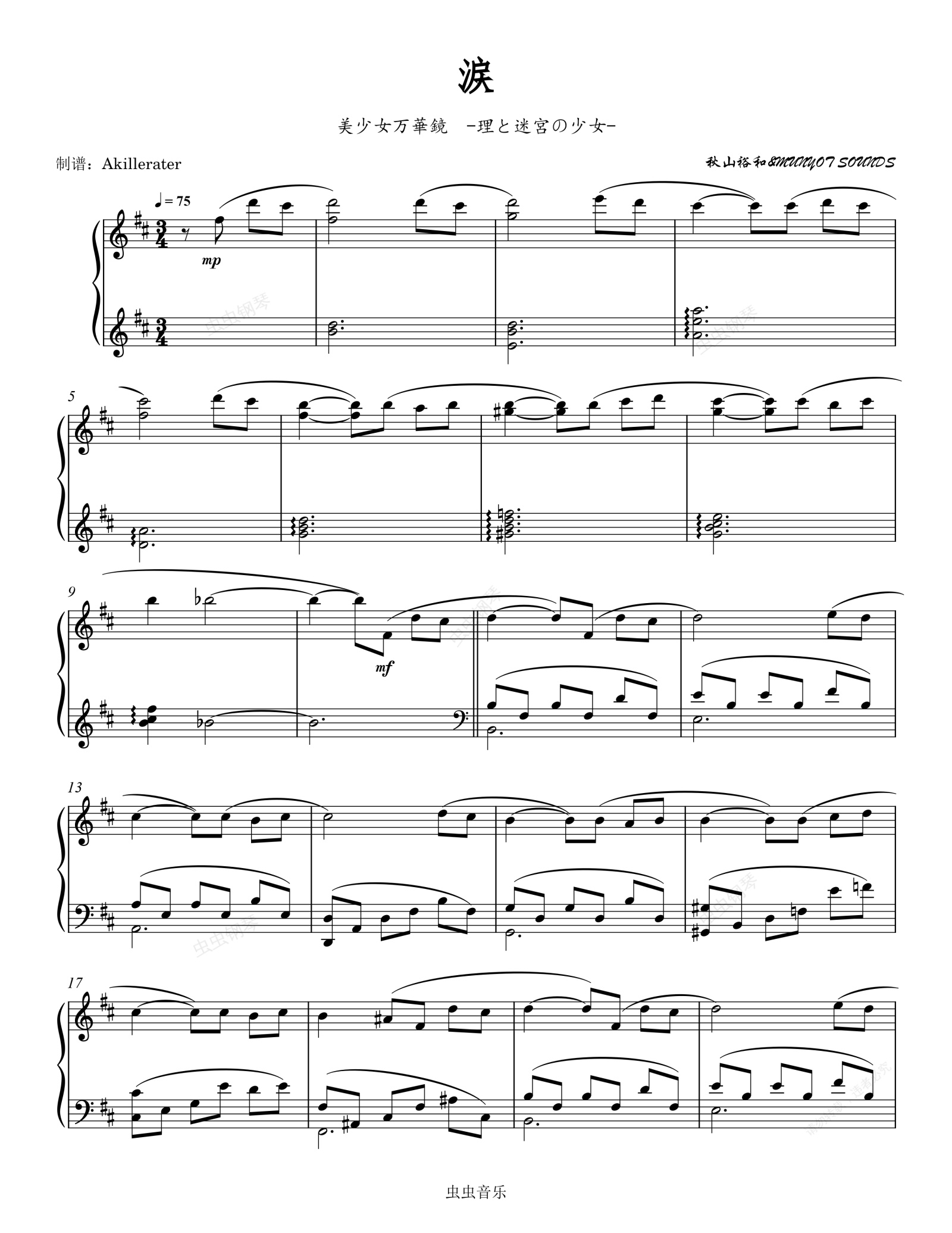 钢琴谱:涙 《美少女万华镜 - 理与迷宫的少女》