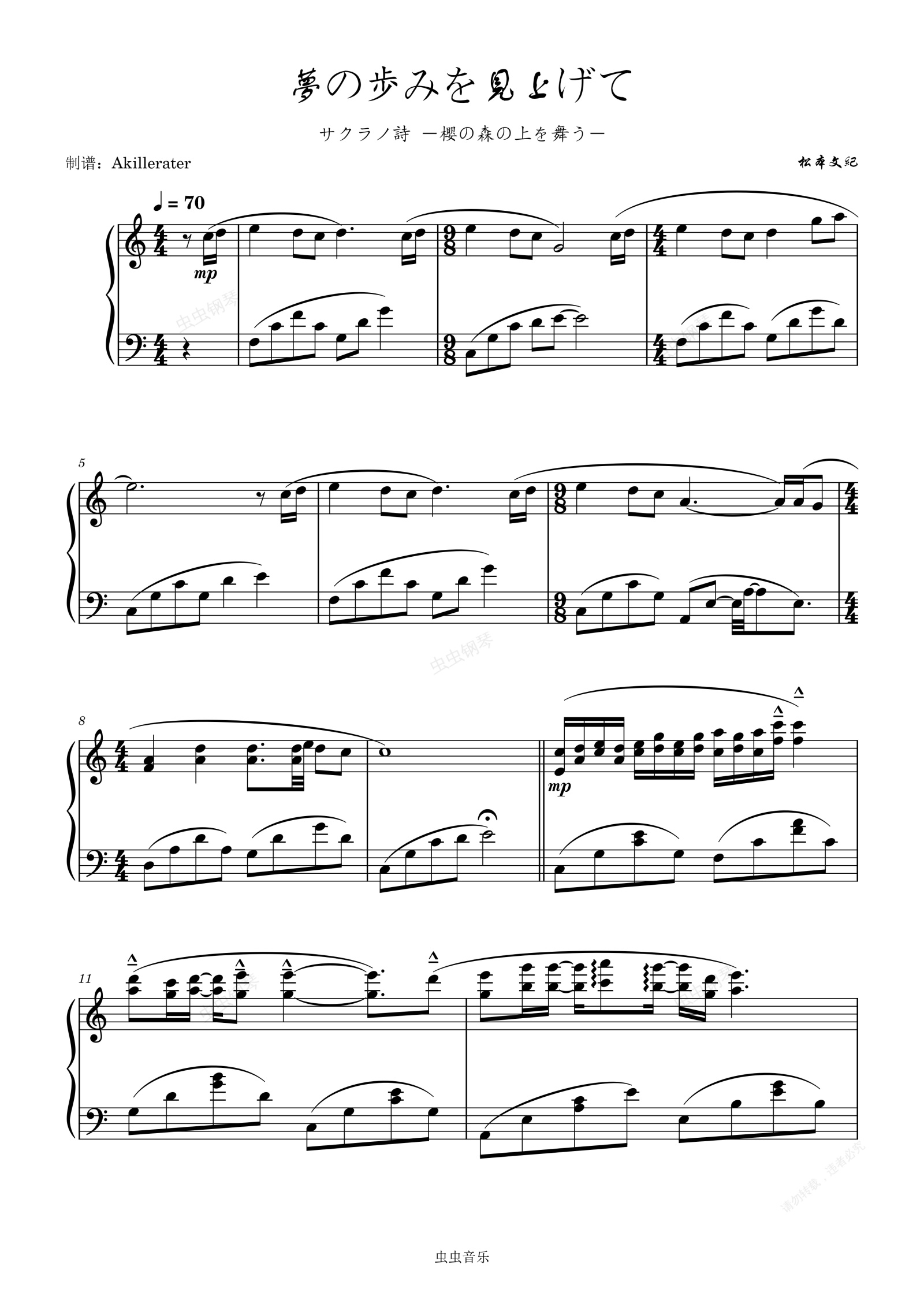 钢琴谱:夢の歩みを見上げて(仰望梦的步伐《樱之诗 -在樱花之森上飞舞-》
