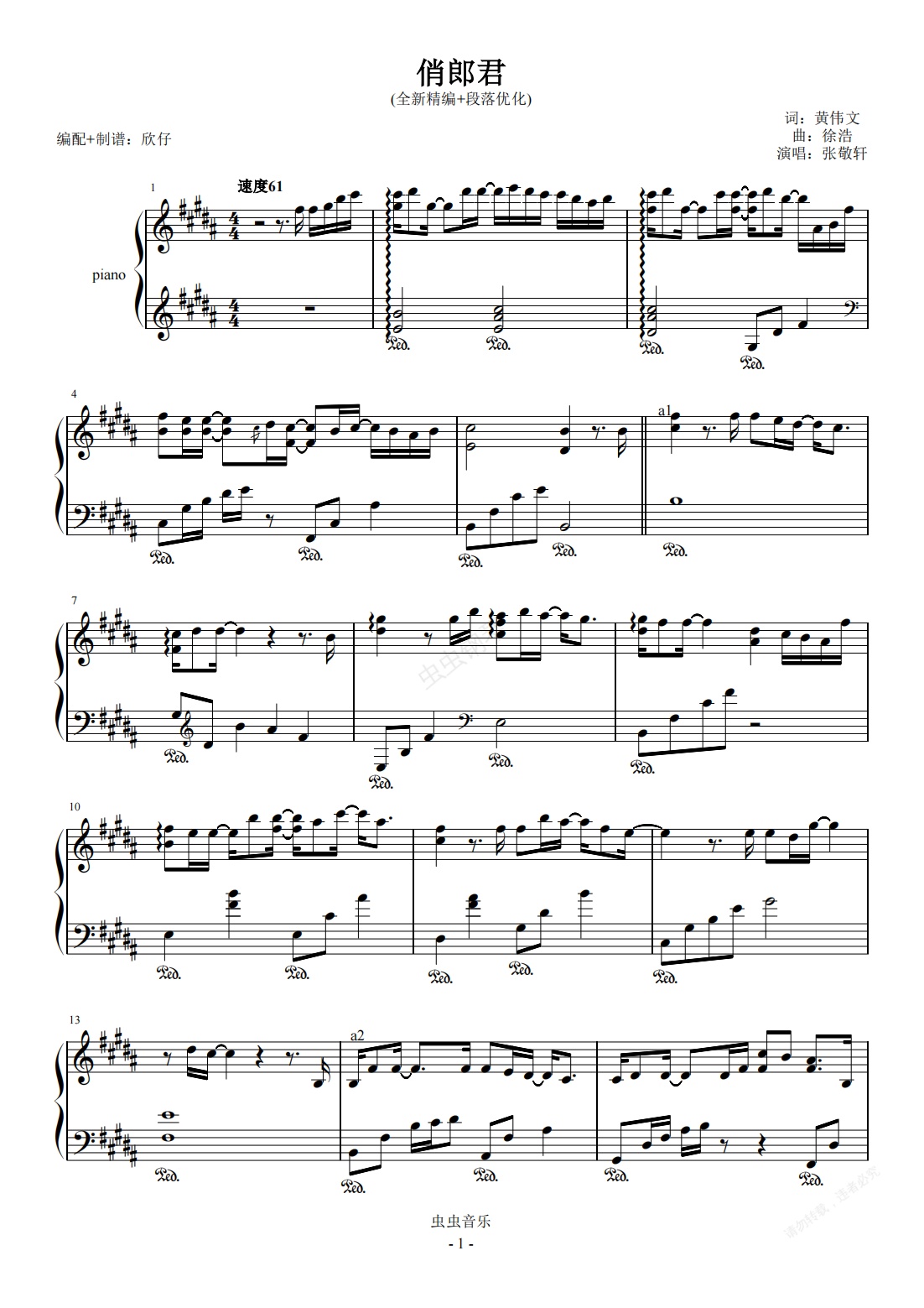 钢琴谱:张敬轩-B《俏郎君》(全新精编+段落优化)