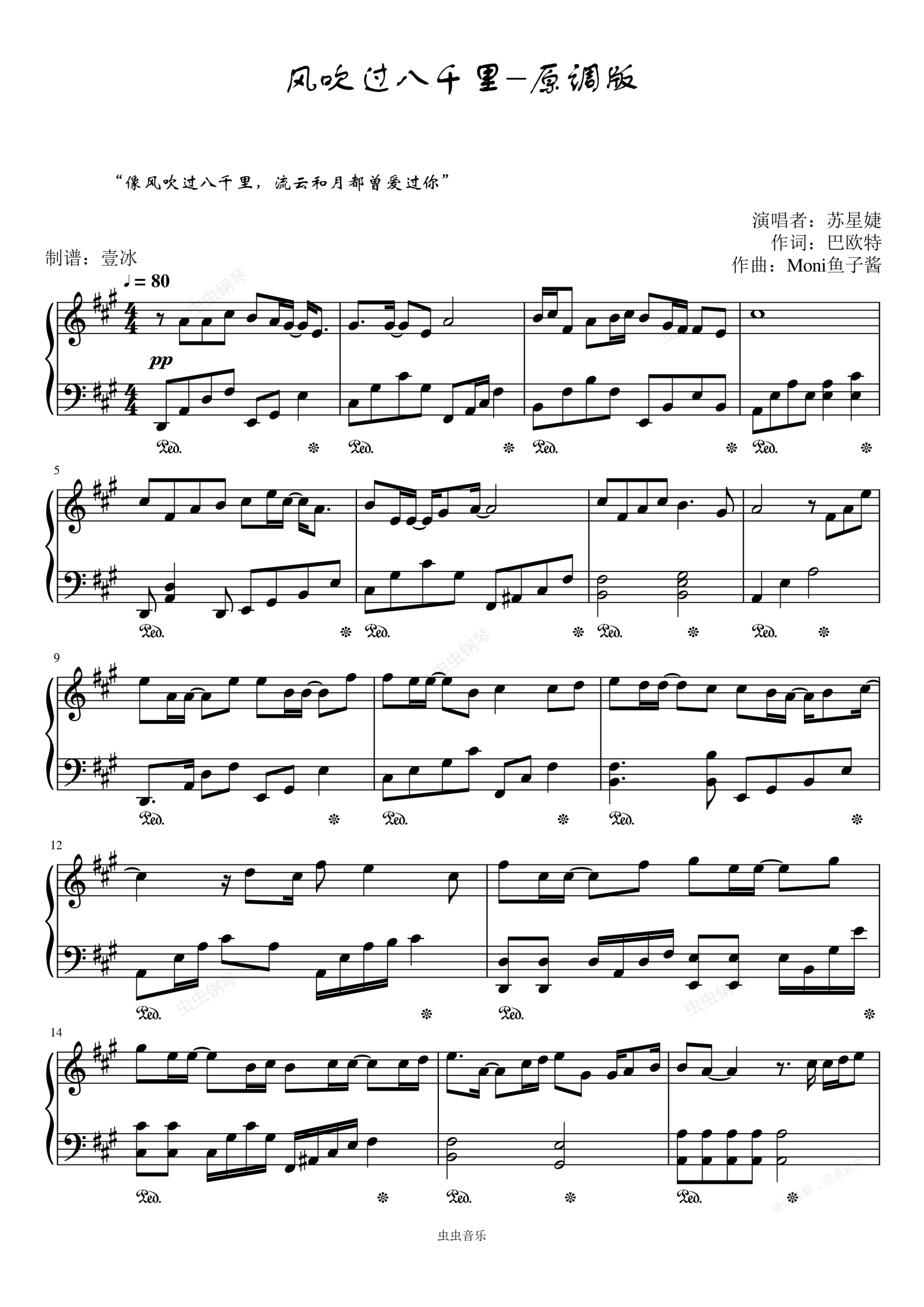 钢琴谱:风吹了八千里//苏星婕-原调版