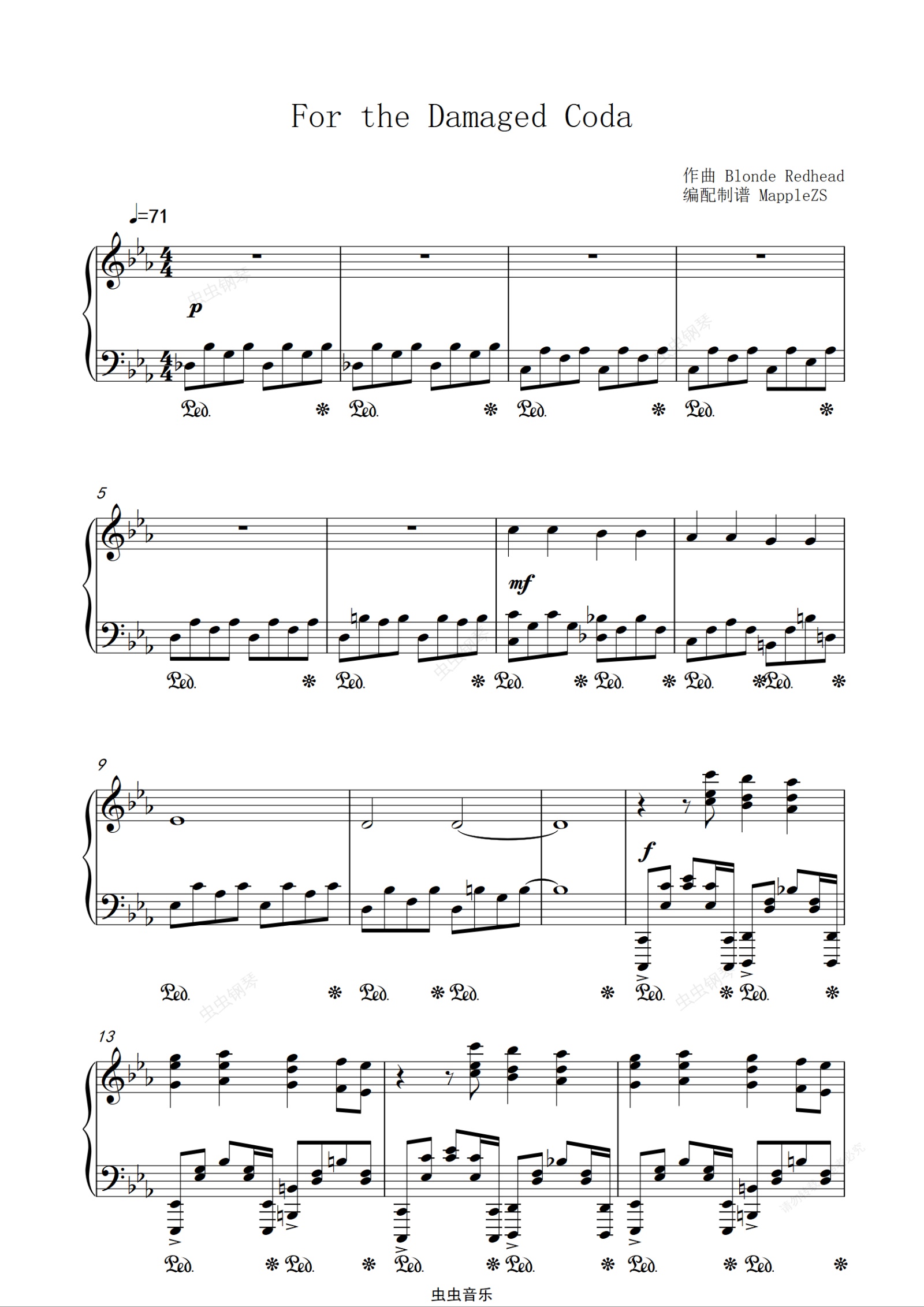 钢琴谱:For the Damaged Coda