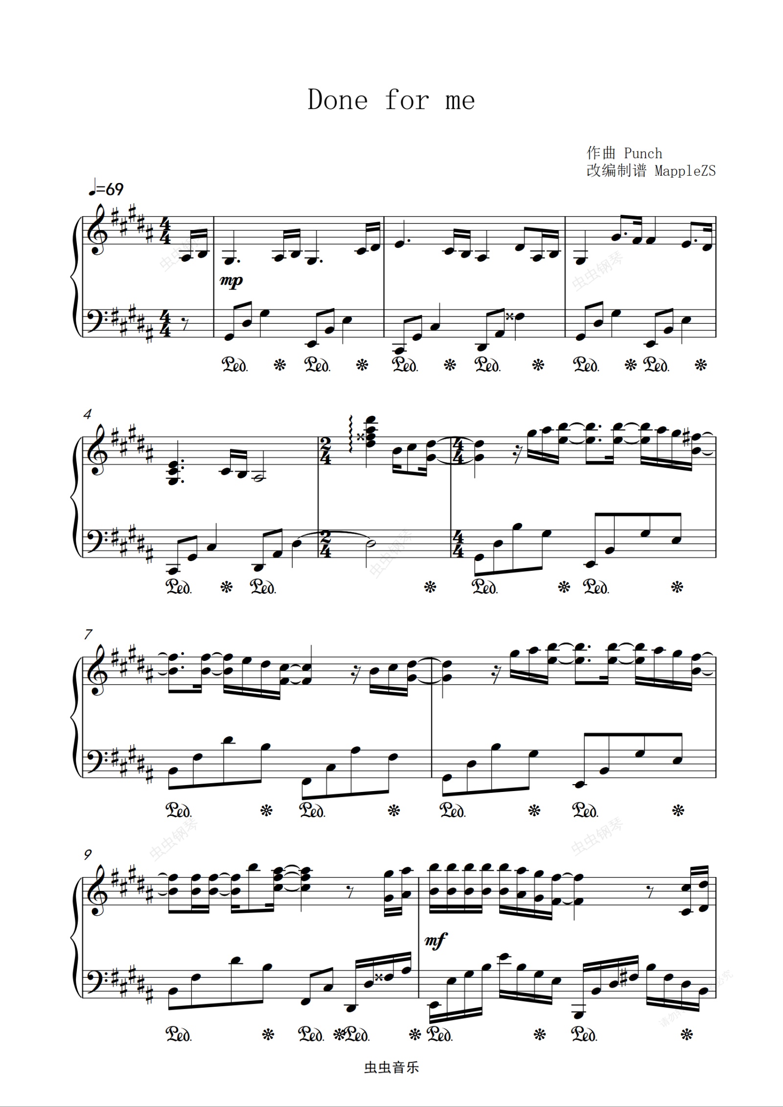 钢琴谱:德鲁纳酒店「done for me」