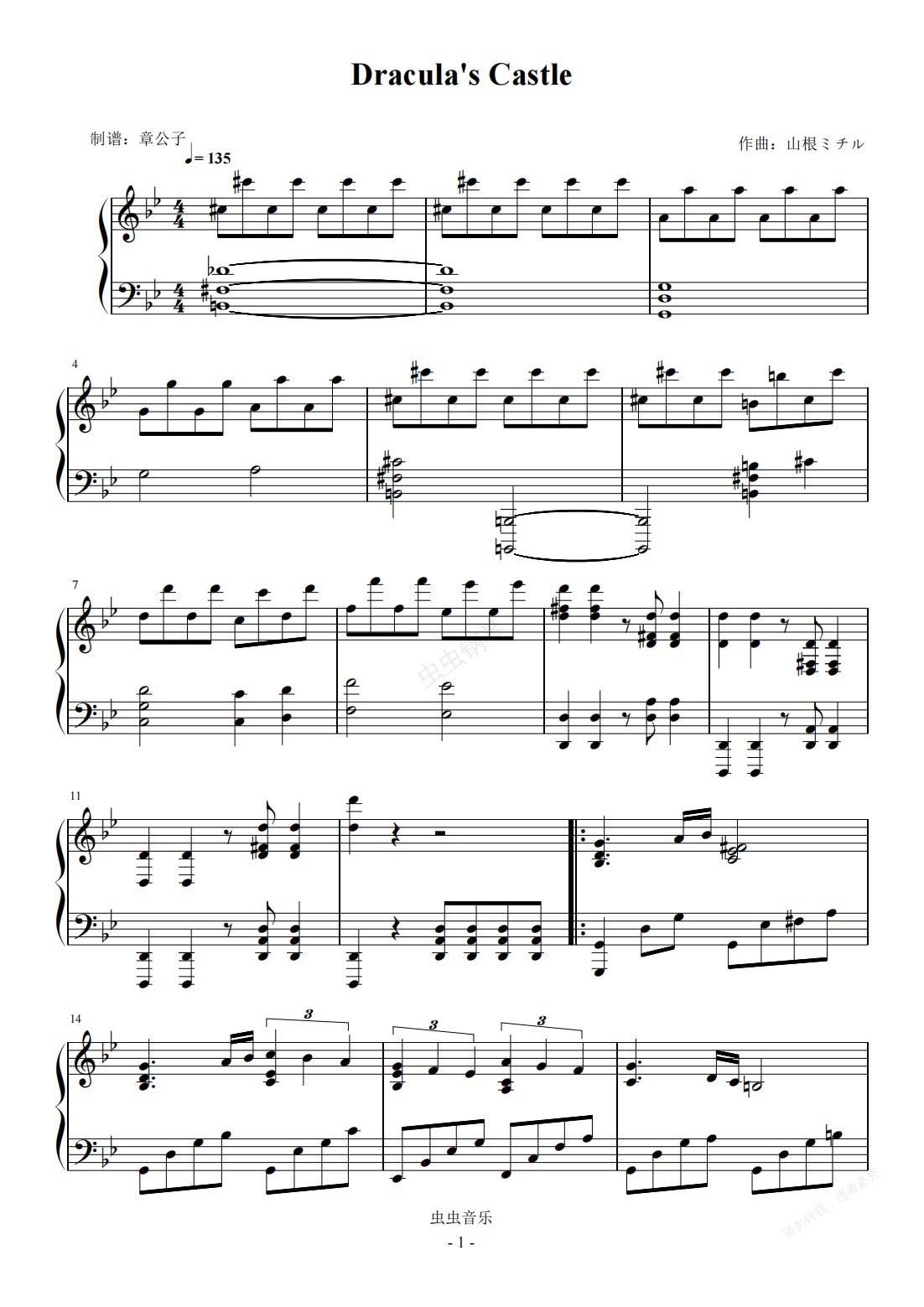 钢琴谱:恶魔城:月下夜想曲 Dracula's Castle 独奏谱