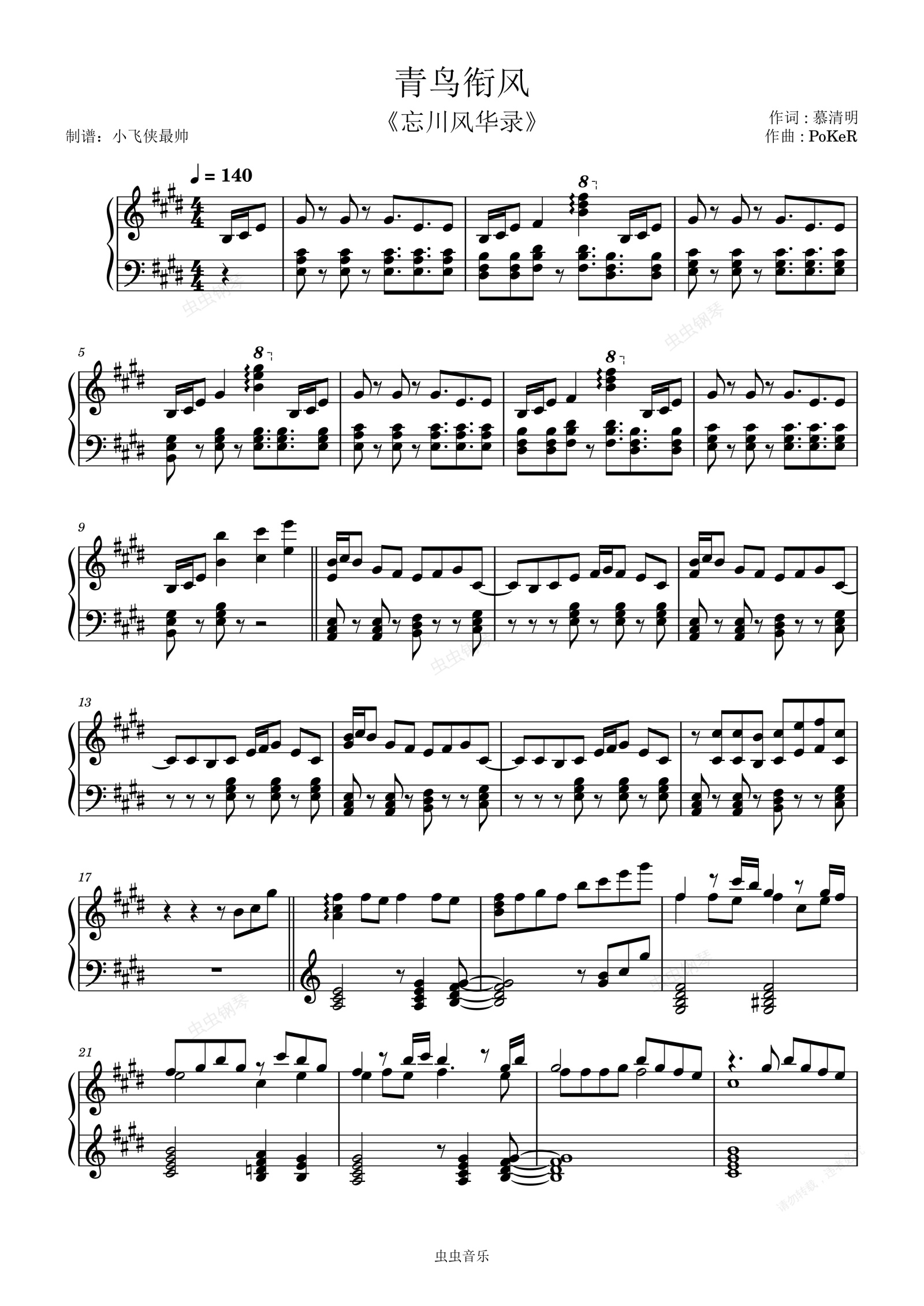 钢琴谱:青鸟衔风《忘川风华录》(海伊、诗岸)