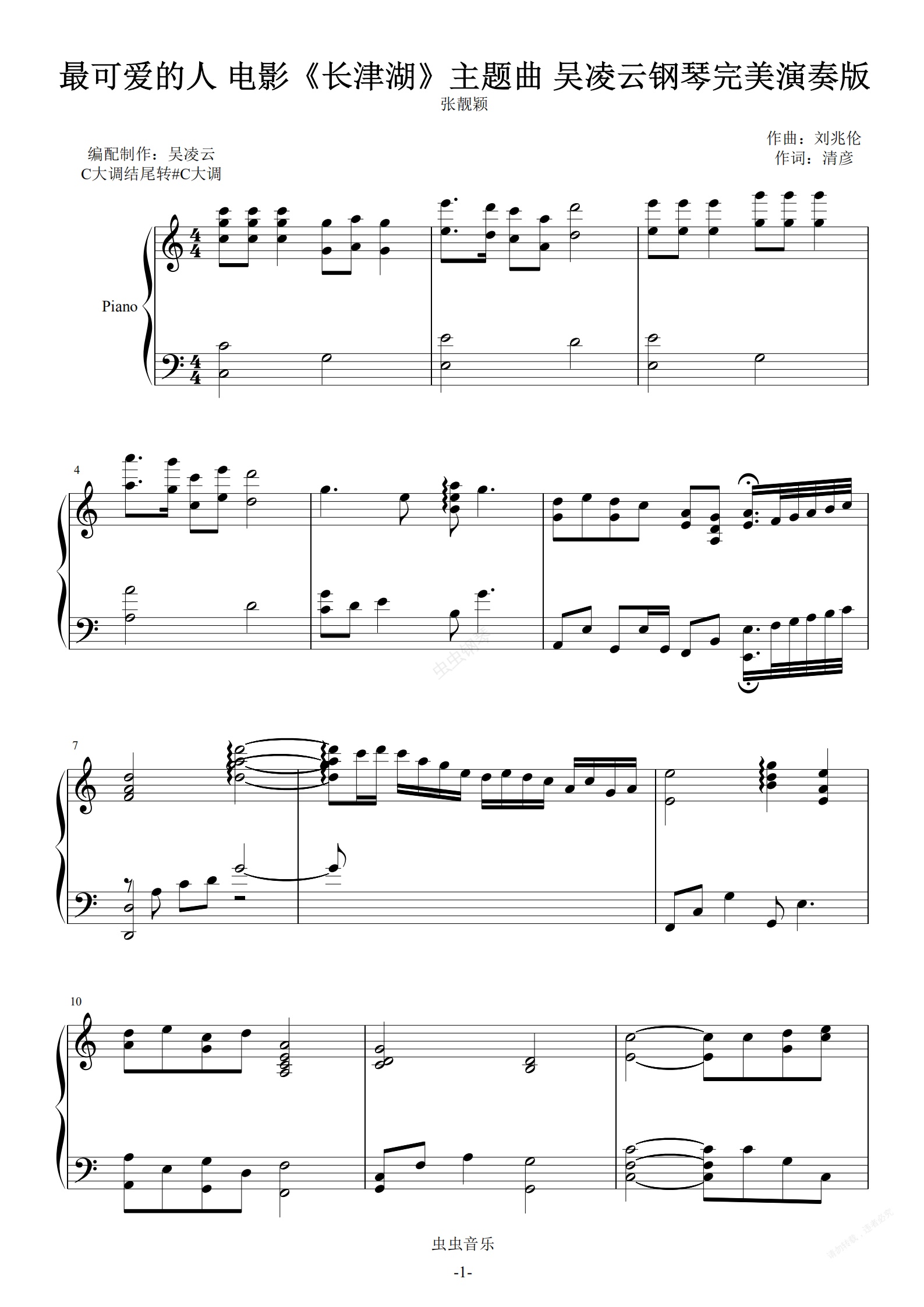 钢琴谱:最可爱的人 张靓颖 电影《长津湖》主题曲 吴凌云钢琴完美演奏版