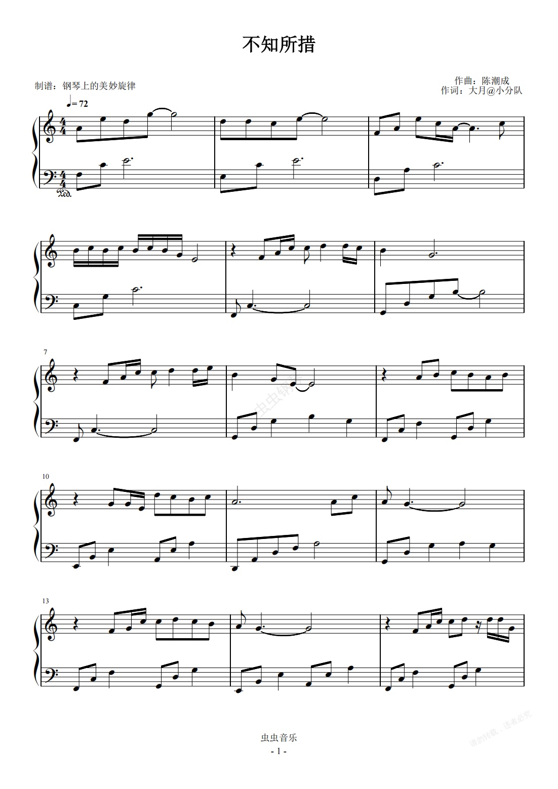 钢琴谱:不知所措 C调简易 王靖雯不胖