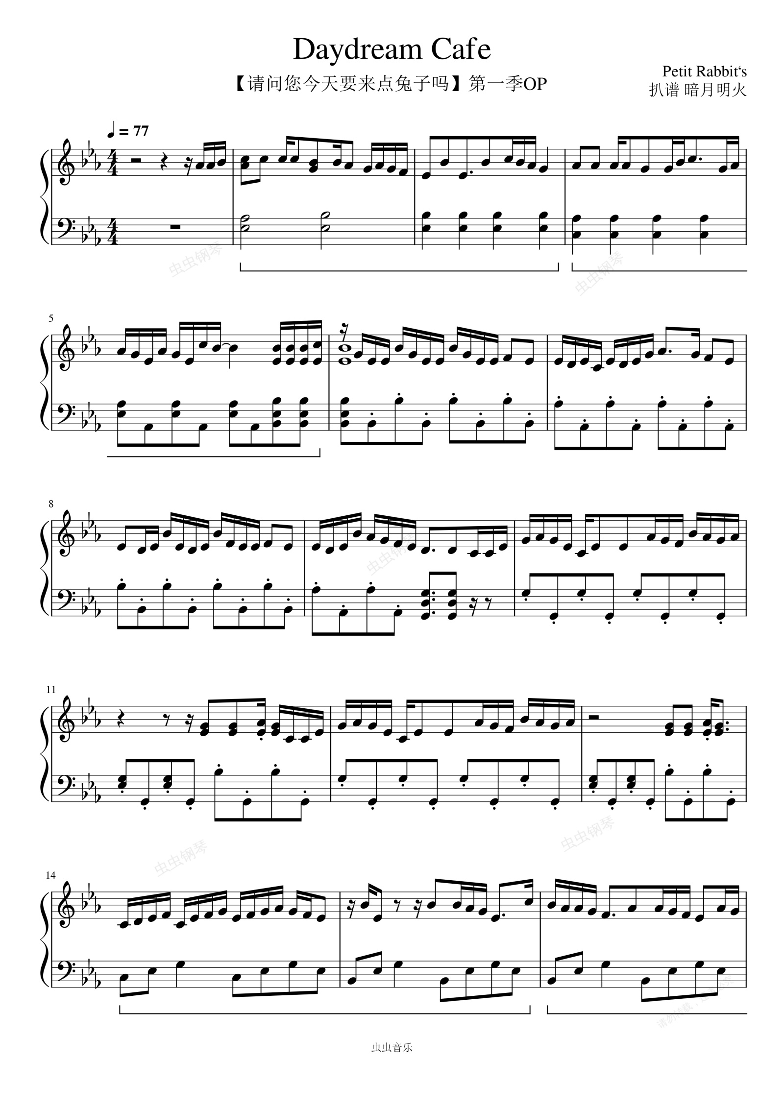 钢琴谱:Daydream Cafe【请问您今天要来点兔子吗】第一季OP