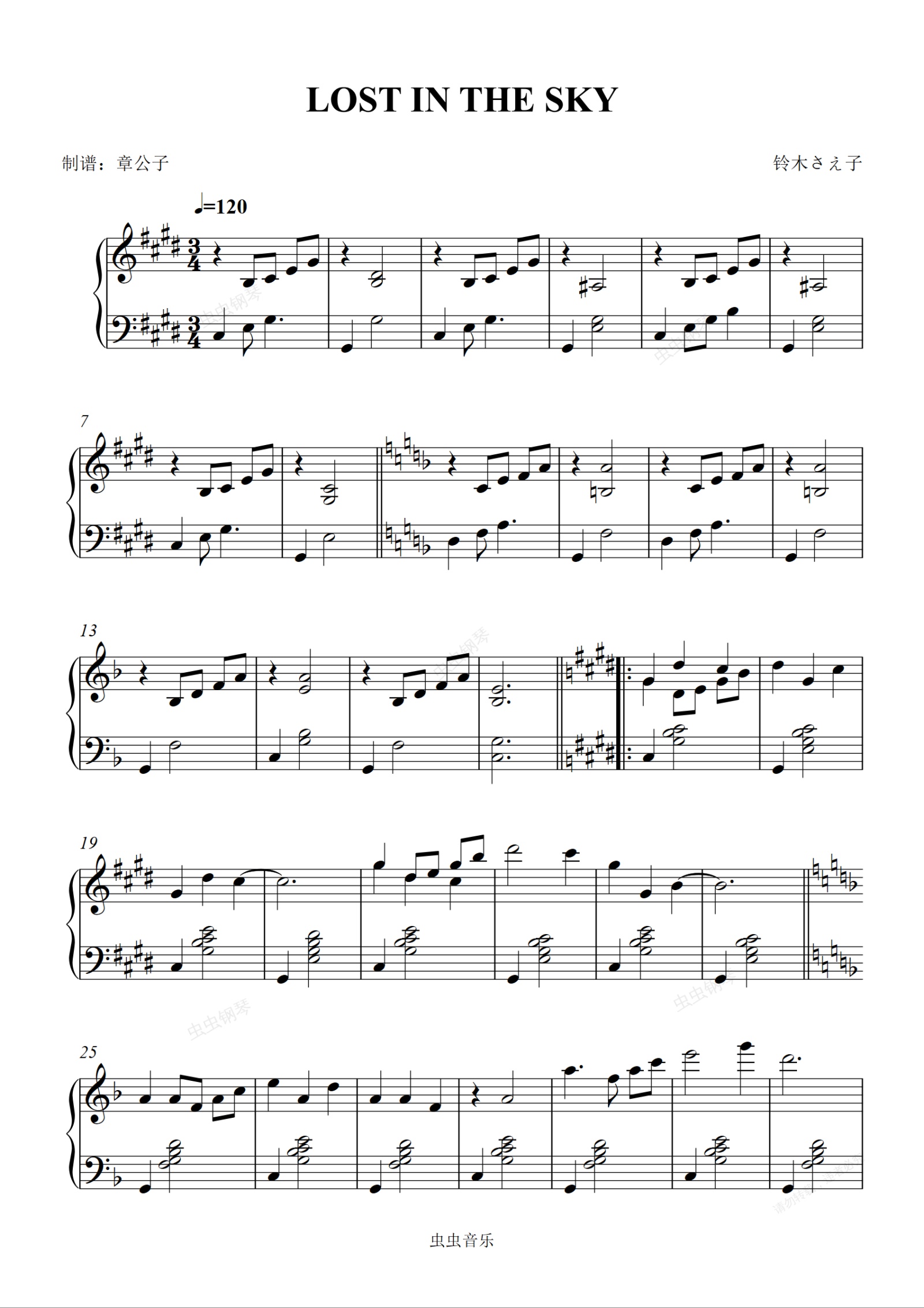 钢琴谱:《LOST IN THE SKY》独奏谱 - 选自动画《Keroro军曹》