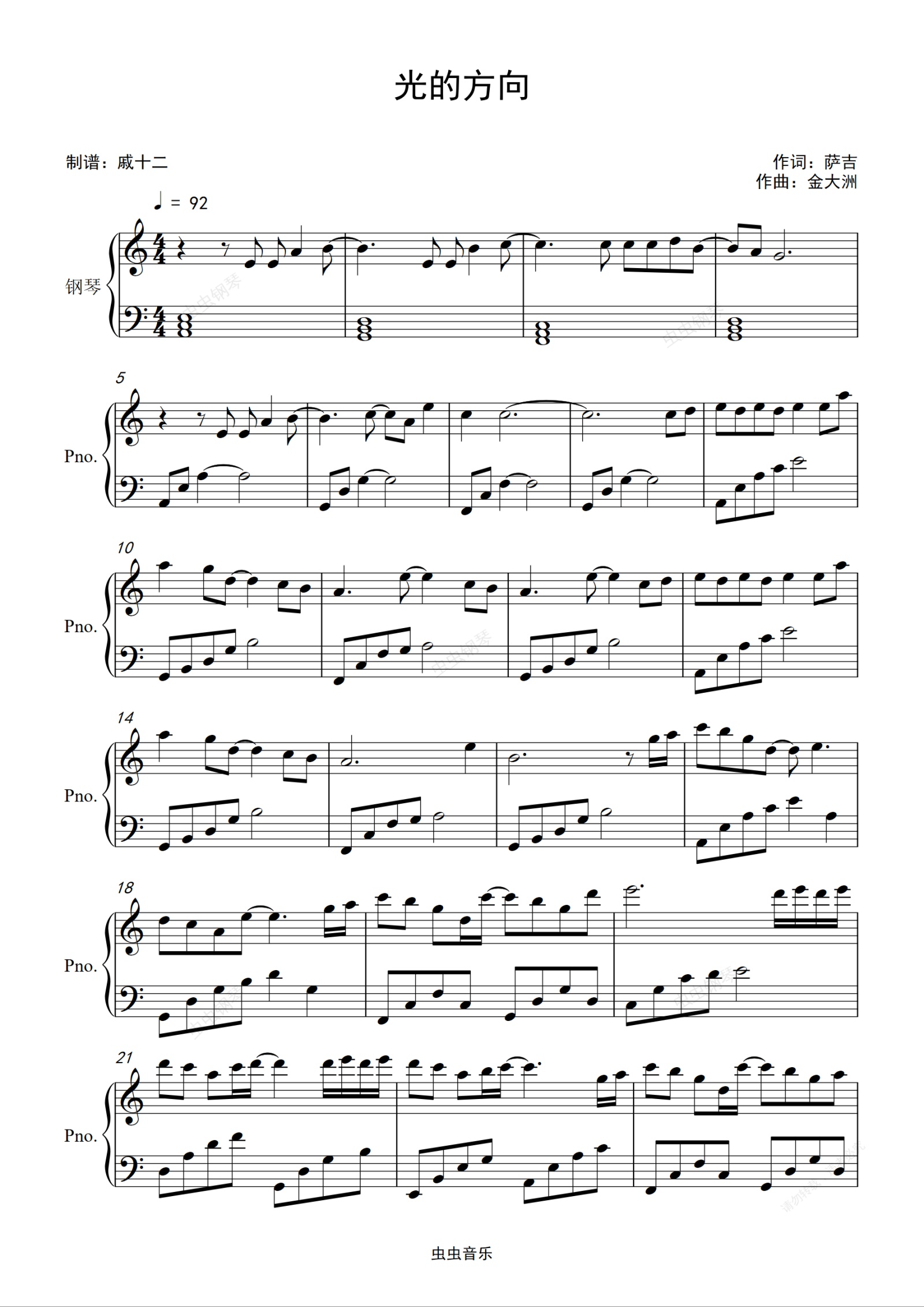 钢琴谱:光的方向《长歌行》主题曲-C调简单版