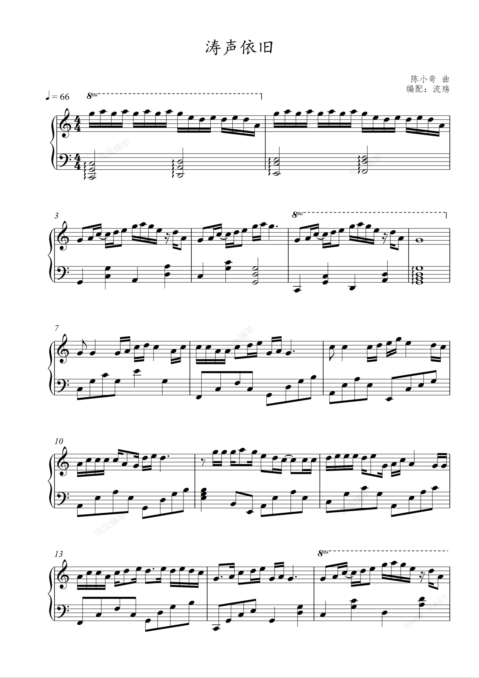 钢琴谱:涛声依旧(C调版)