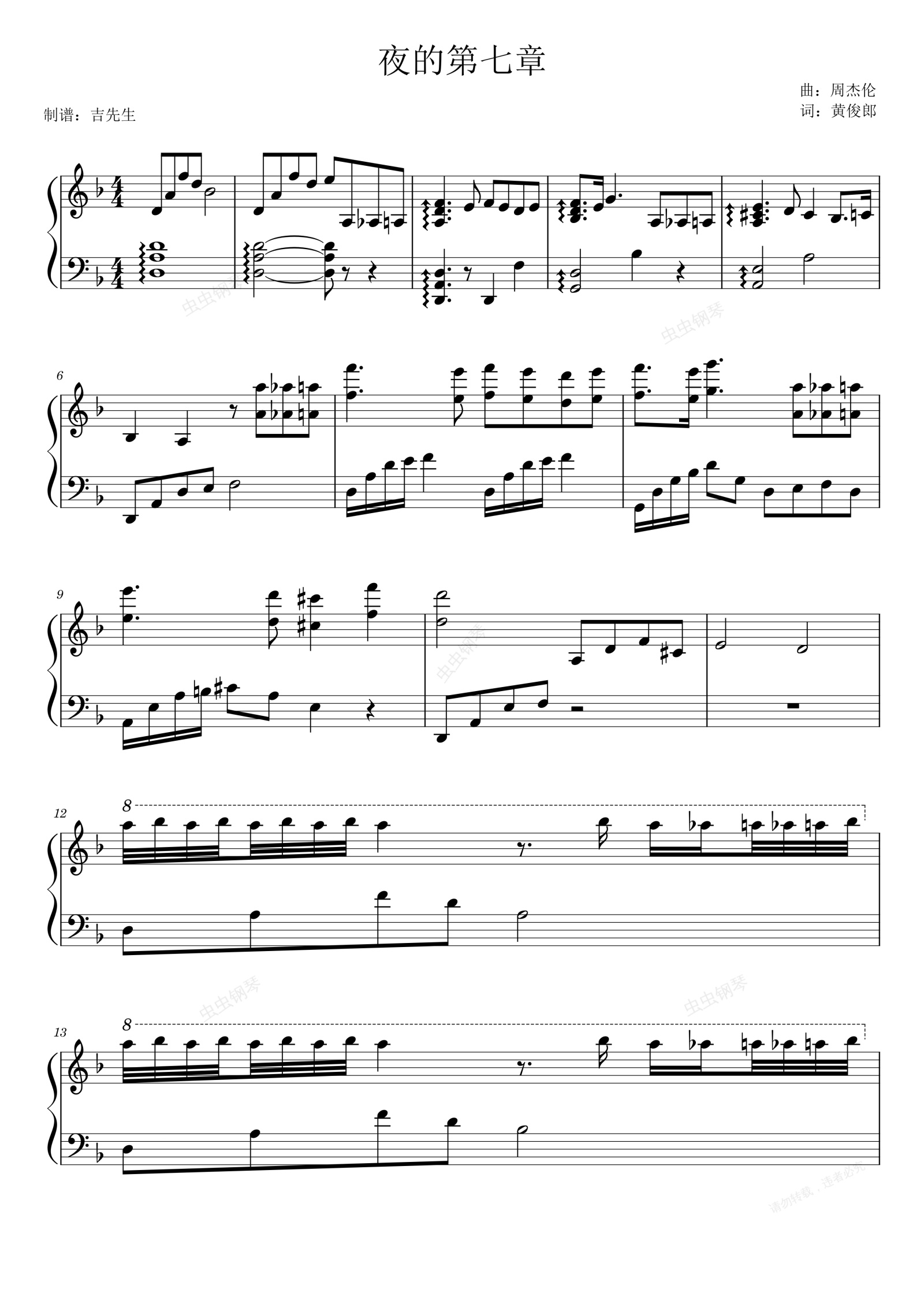 钢琴谱:《夜的第七章》(附歌词)周杰伦黑暗三部曲弹唱完整版