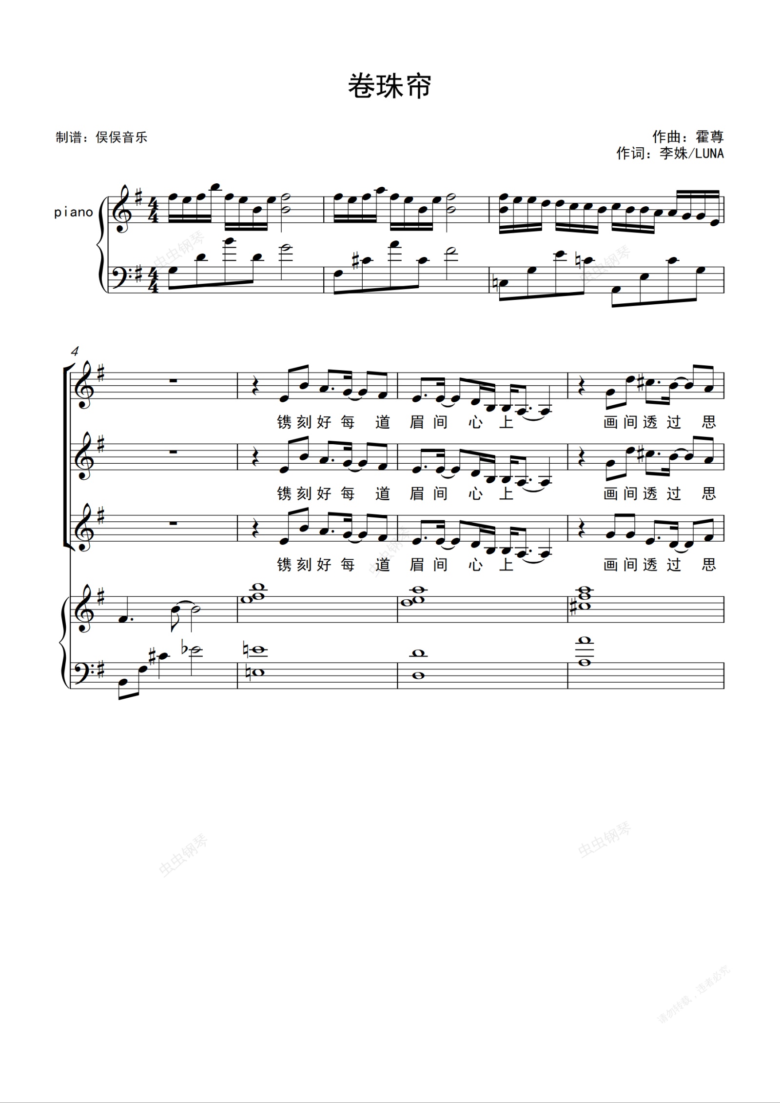 钢琴谱:卷珠帘(合唱伴奏谱)