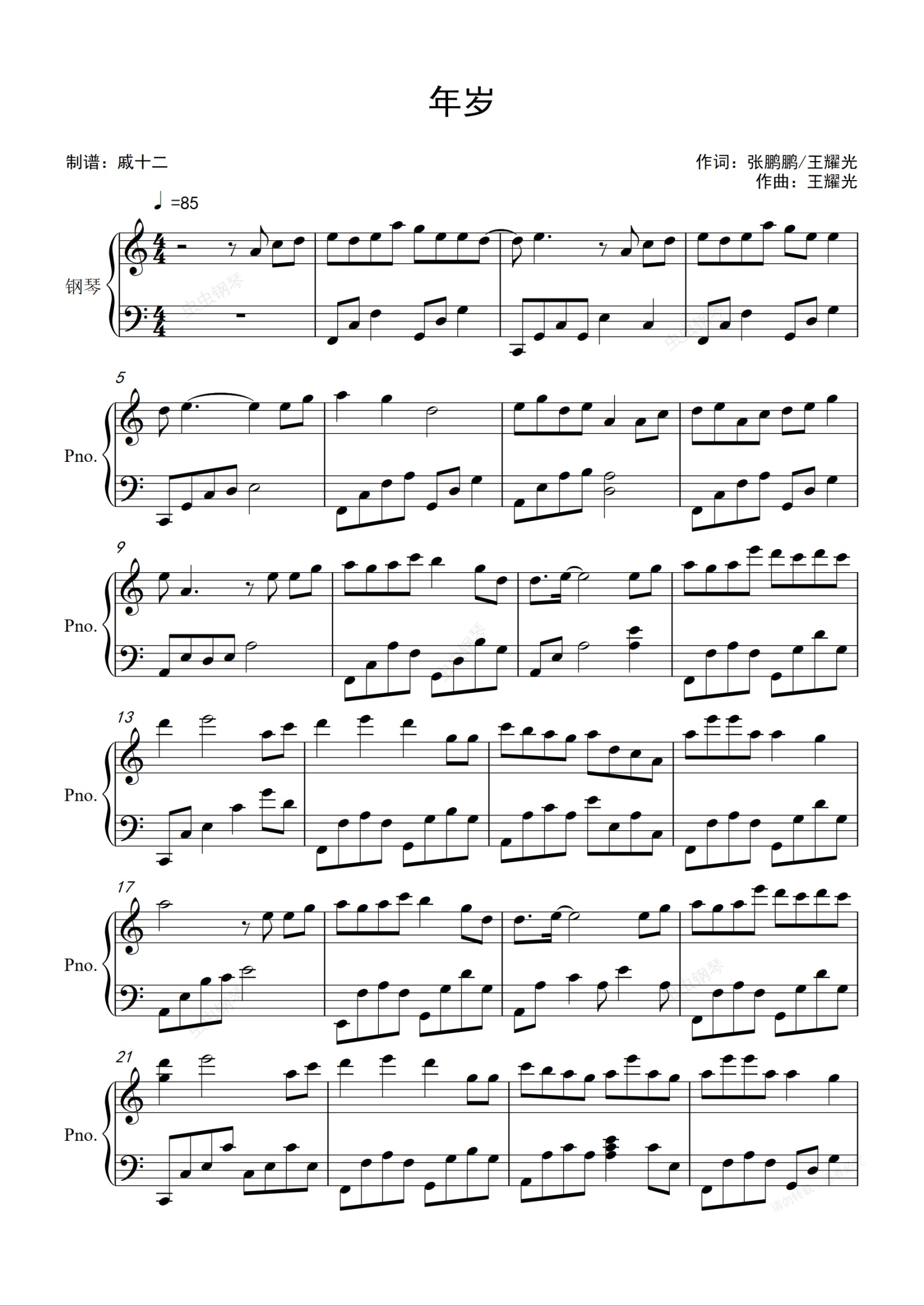 钢琴谱:年岁《千古玦尘》片尾曲-C调简单版