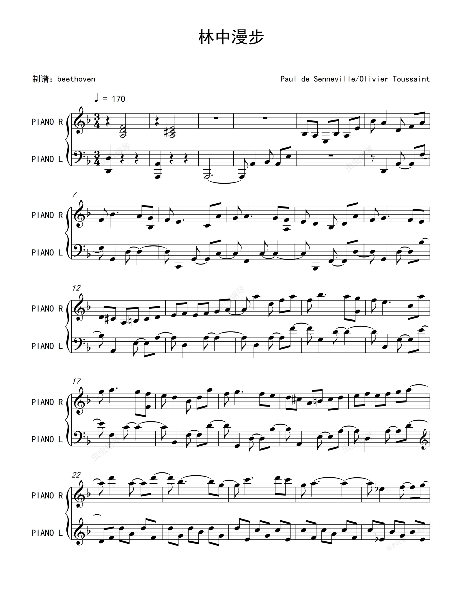 钢琴谱:林中漫步-理查德克莱德曼版本-纯钢琴