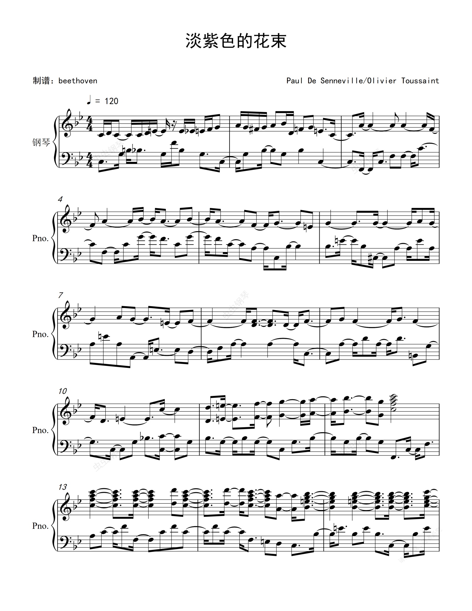 钢琴谱:淡紫色的花束-理查德克莱德曼