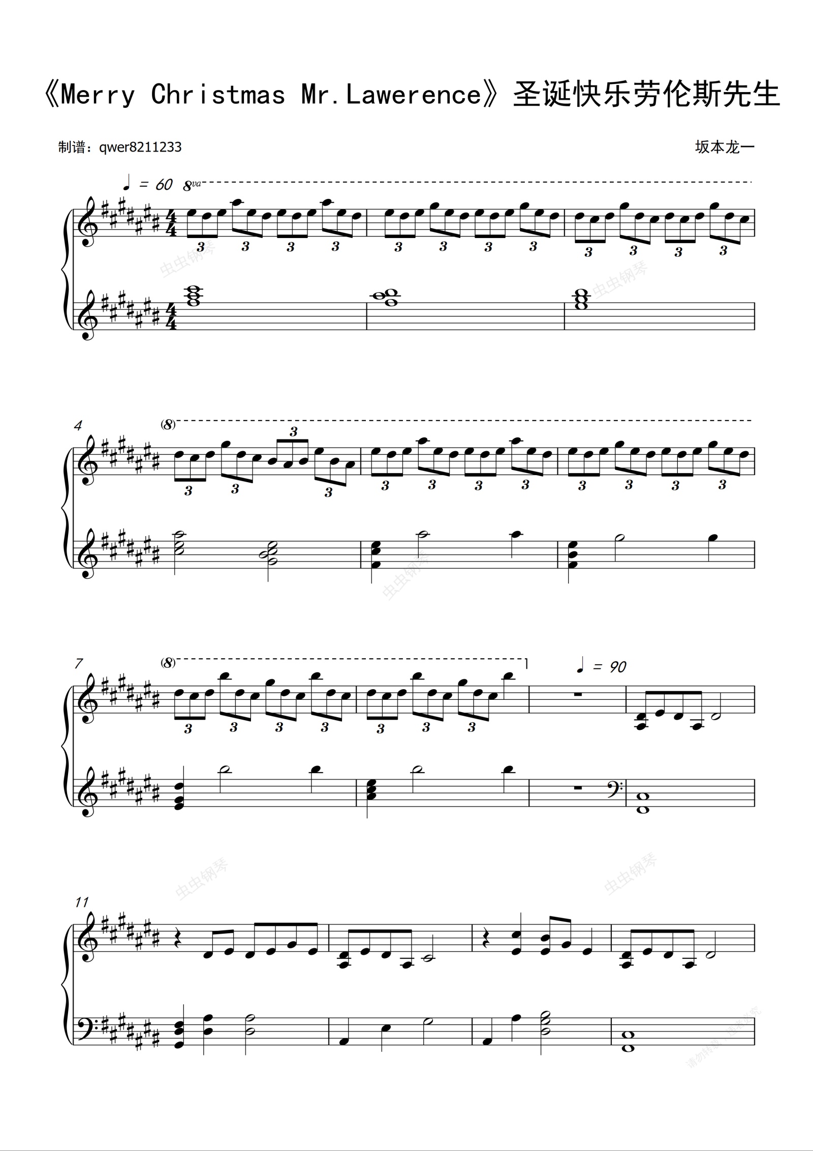 钢琴谱:《Merry Christmas Mr. Lawrence》圣诞快乐劳伦斯先生