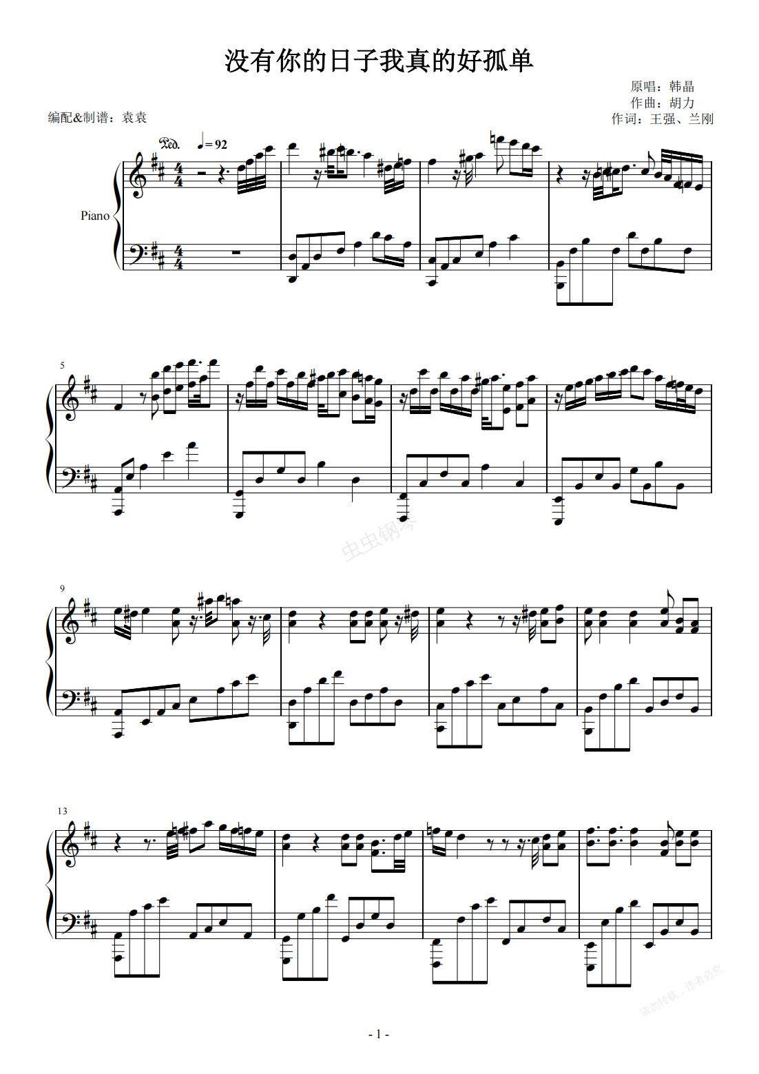 钢琴谱:没有你的日子我真的好孤单 完美演奏版