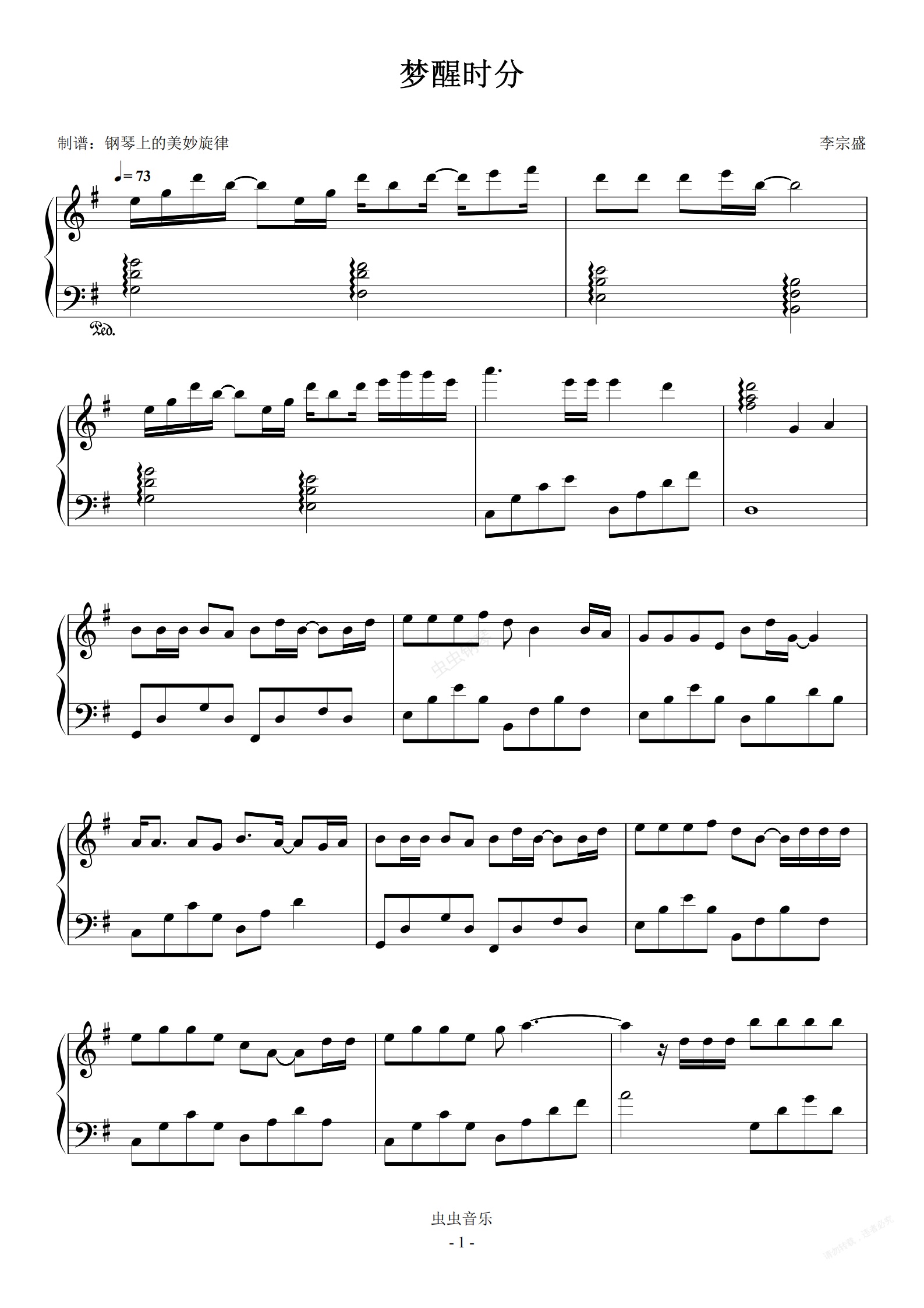 钢琴谱:梦醒时分简易版 陈淑桦  经典流行