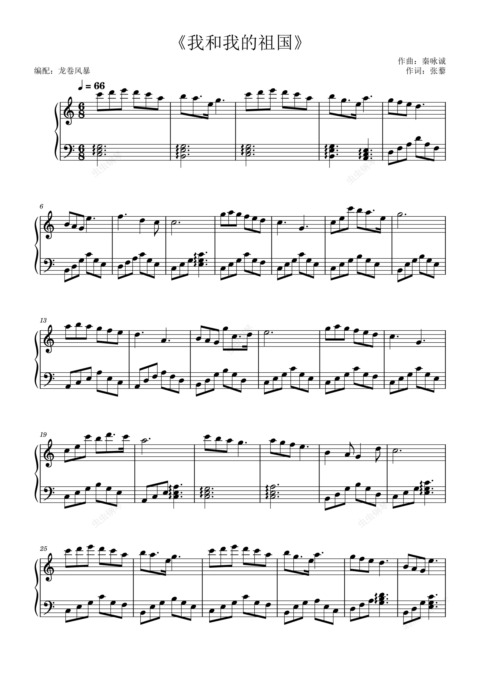 钢琴谱:《我和我的祖国》钢琴演奏版(C调简单版)
