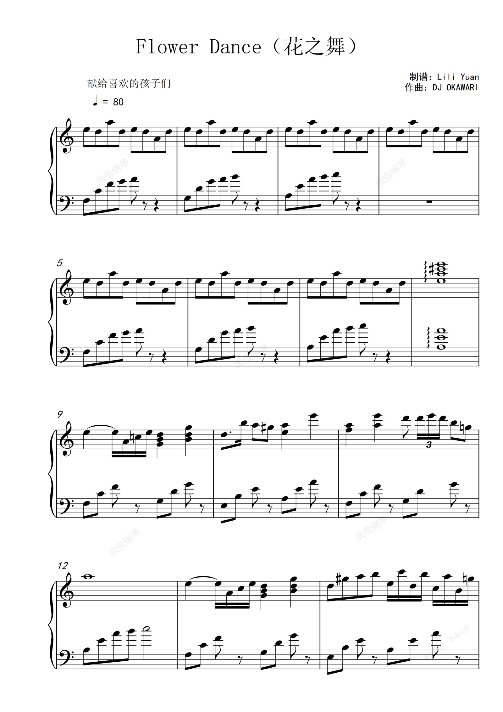 钢琴谱:Flower Dance 花之舞 C调 简单好听(LY)