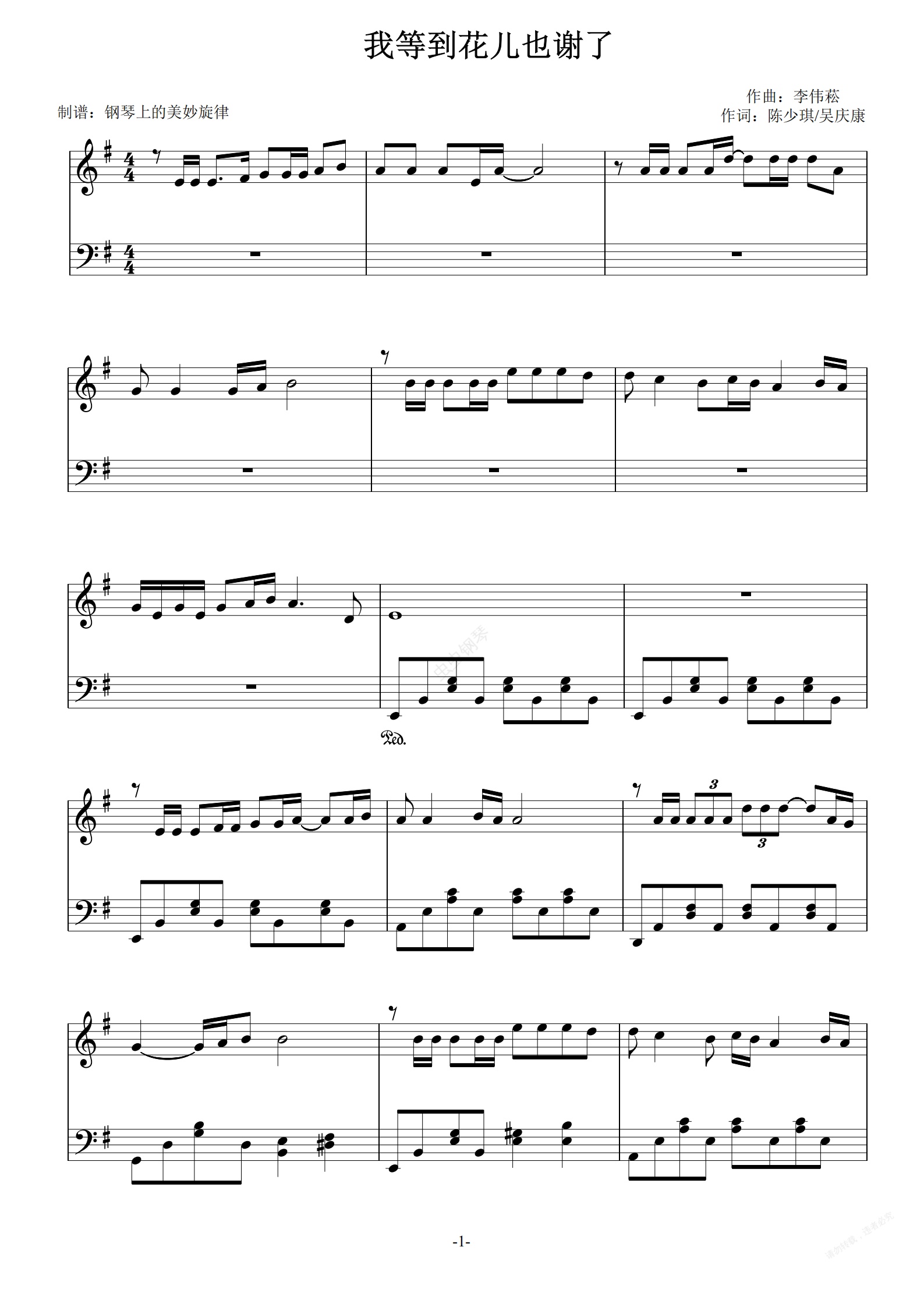 钢琴谱:我等到花儿也谢了 简易版 张学友