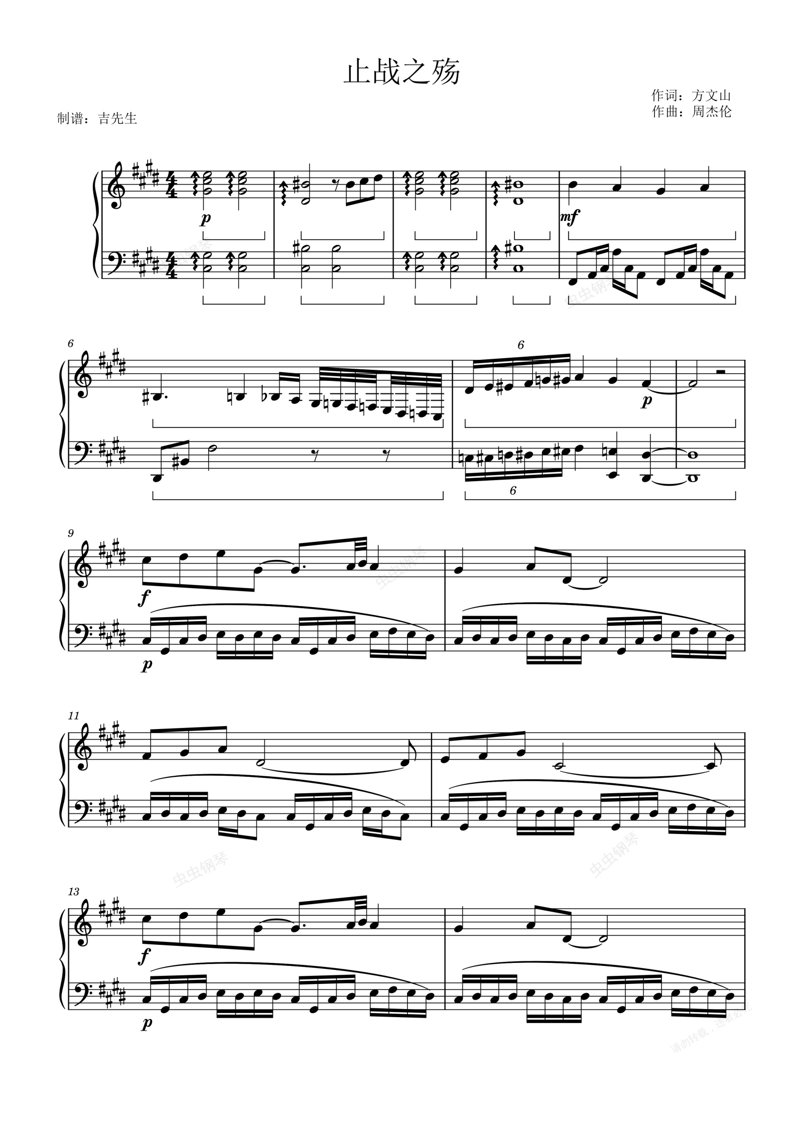 钢琴谱:《止战之殇》周杰伦黑暗三部曲弹唱完整版(附歌词)