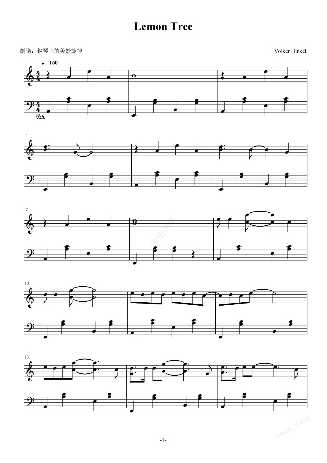 钢琴谱:Lemon Tree 柠檬树 C调简易版 苏慧伦