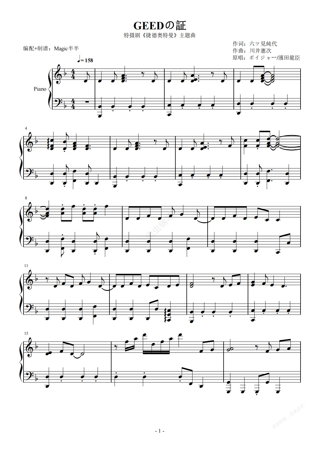 钢琴谱:<捷德奥特曼>主题曲 GEEDの証(完整版)