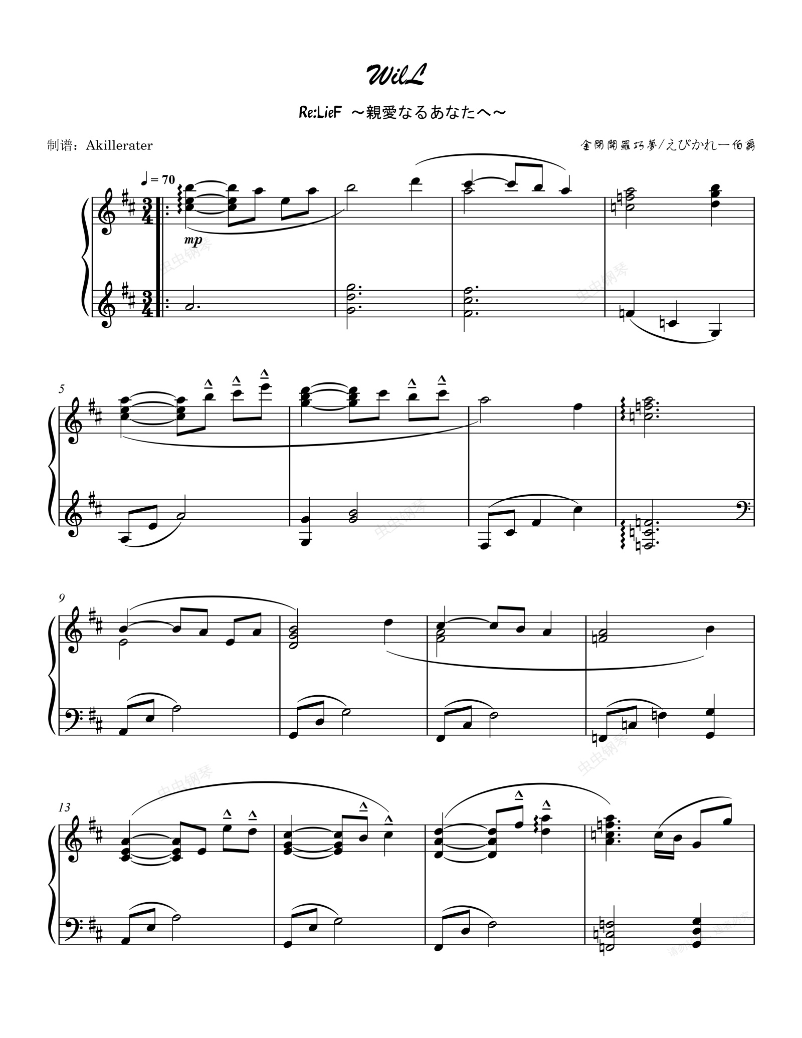 钢琴谱:WIlL《Re:LieF〜献给亲爱的你〜》