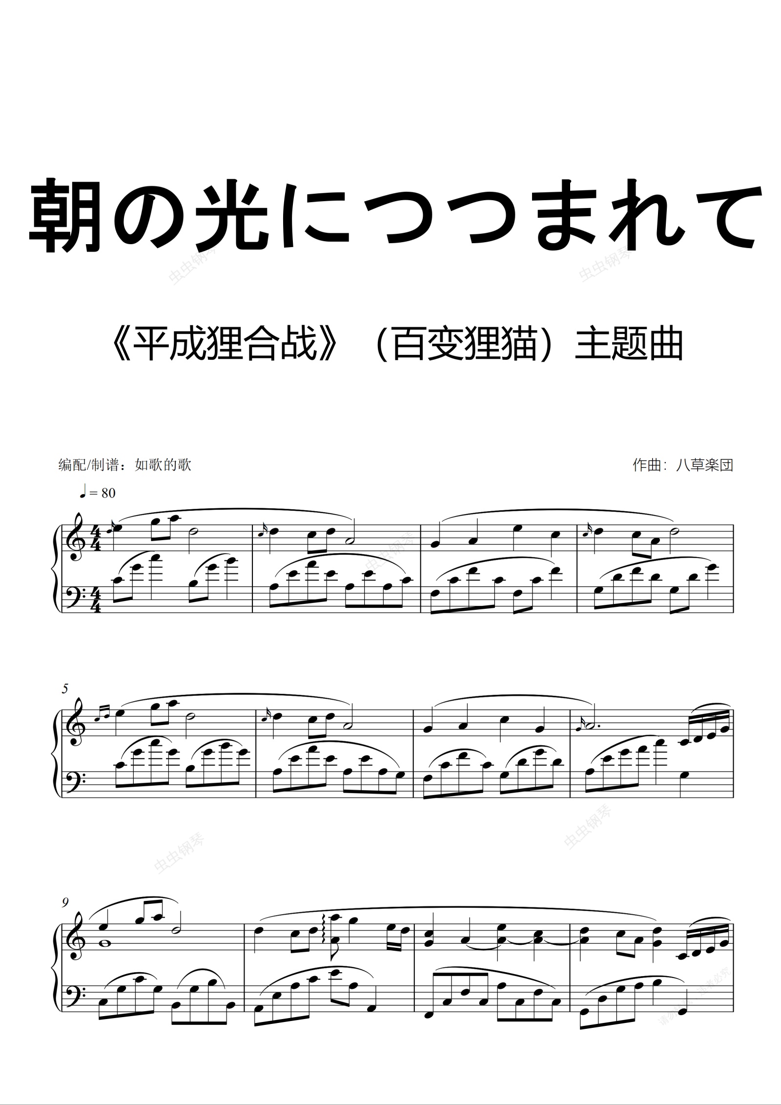 钢琴谱:朝の光につつまれて《平成狸合战》百变狸猫主题曲