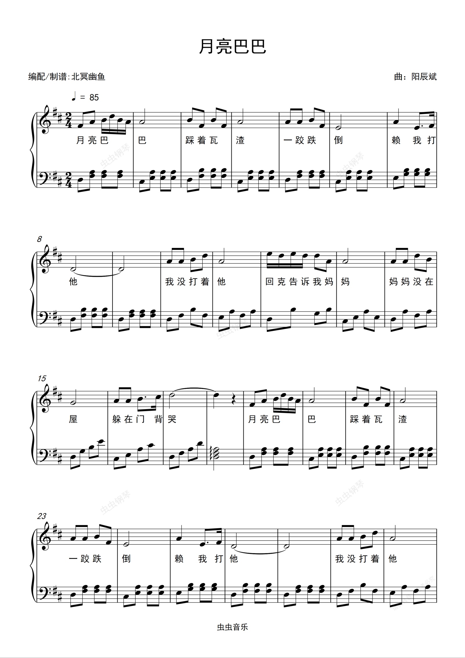 钢琴谱:月亮巴巴-桂林童谣-原创