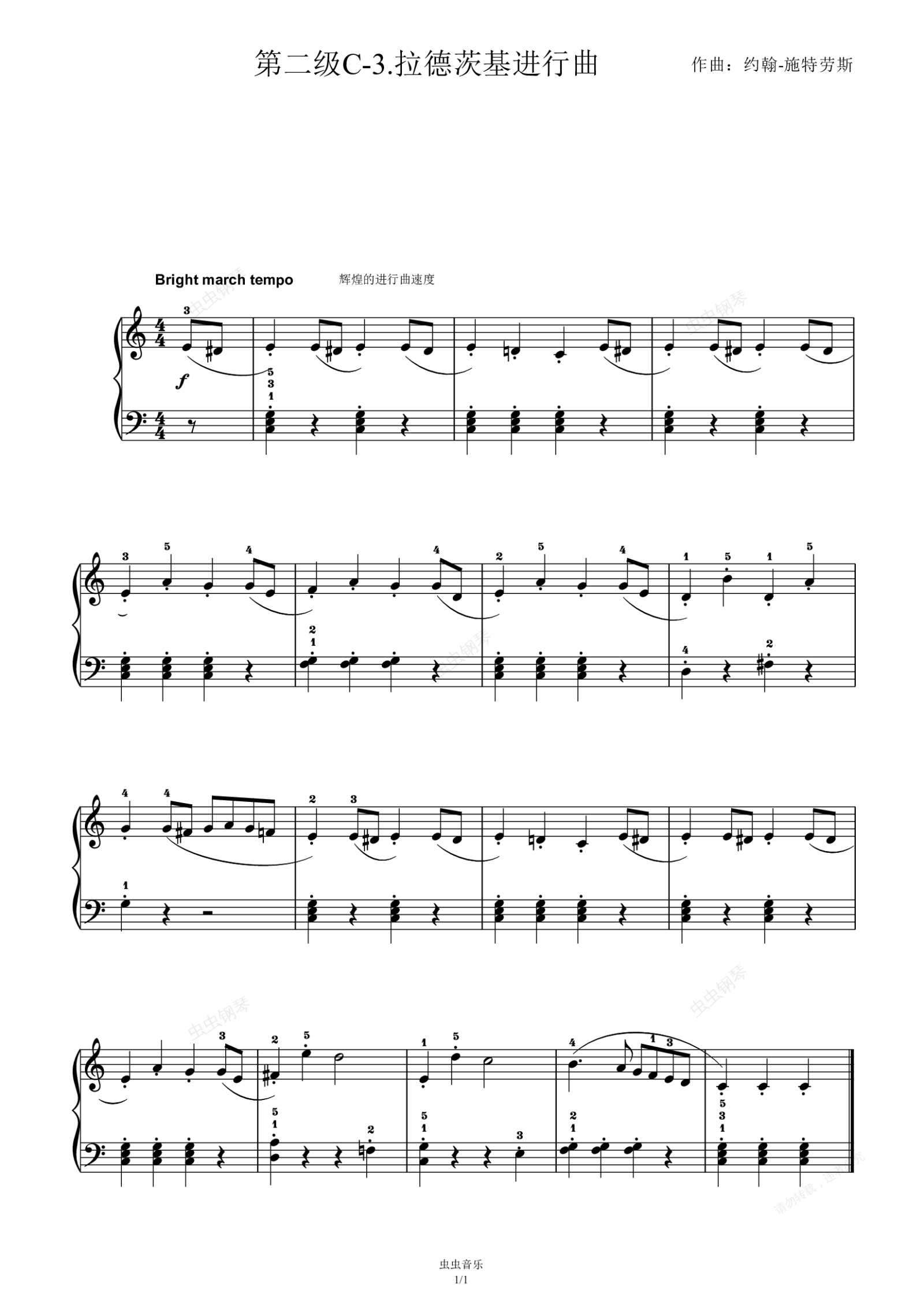 钢琴谱:第二级C-3.拉德茨基进行曲