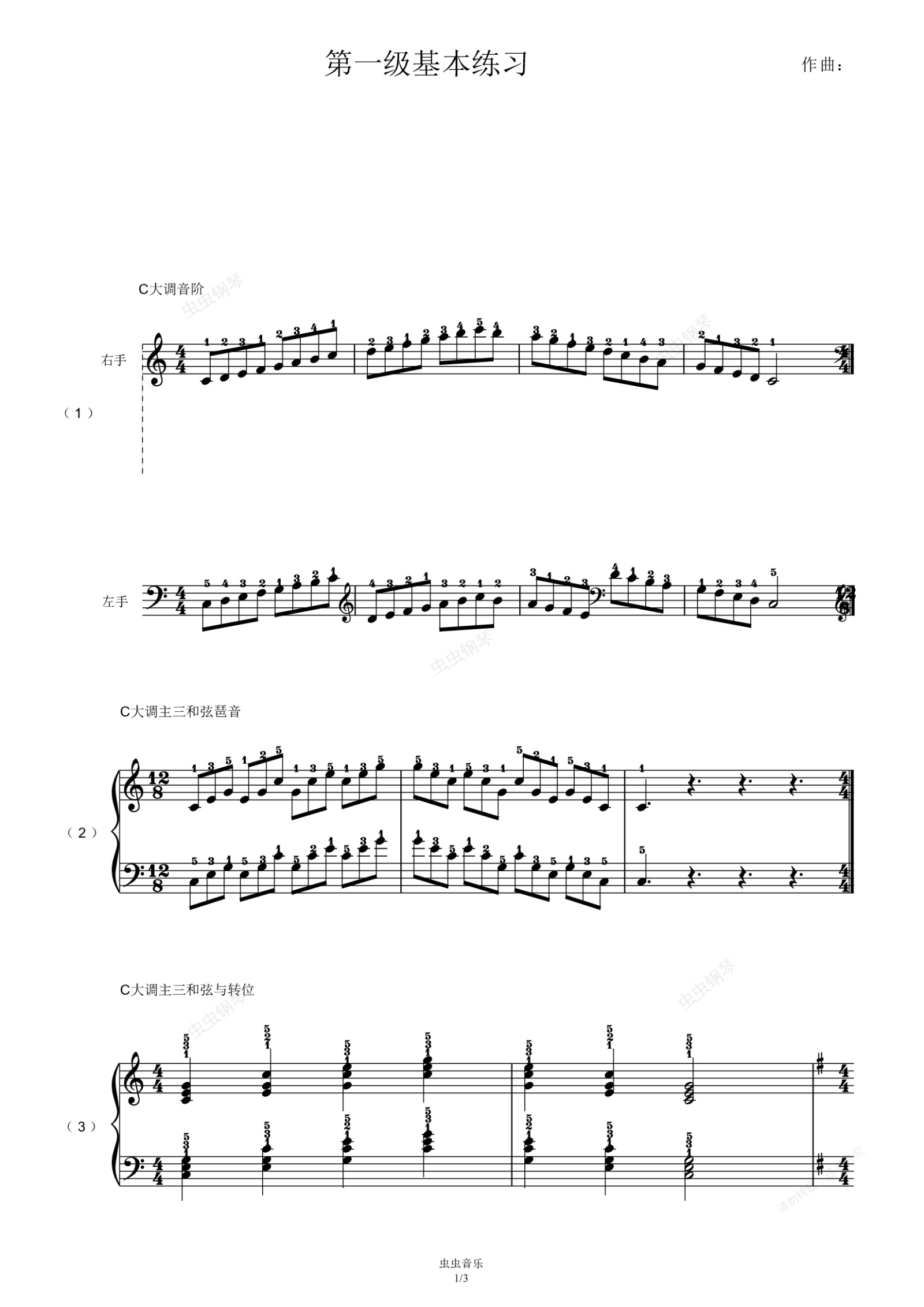 您的位置: 首页 > 钢琴谱库 > 第一级基本练习