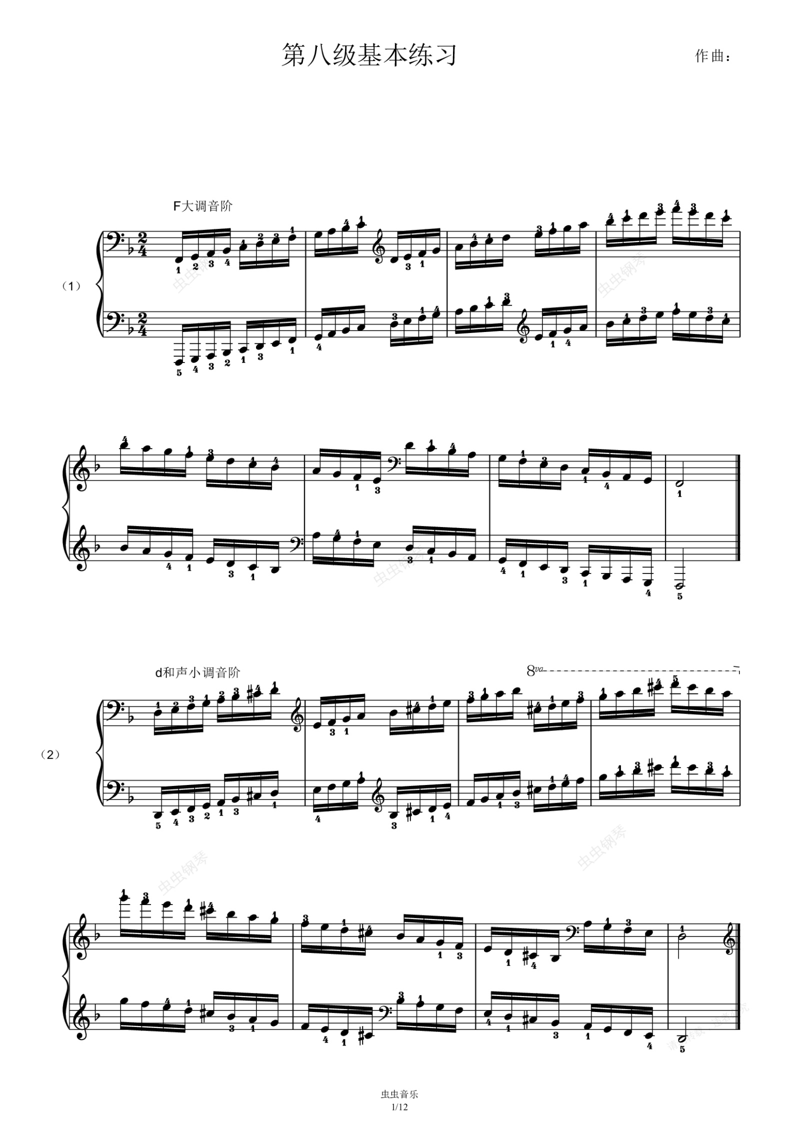 您的位置: 首页 > 钢琴谱库 > 第八级基本练习