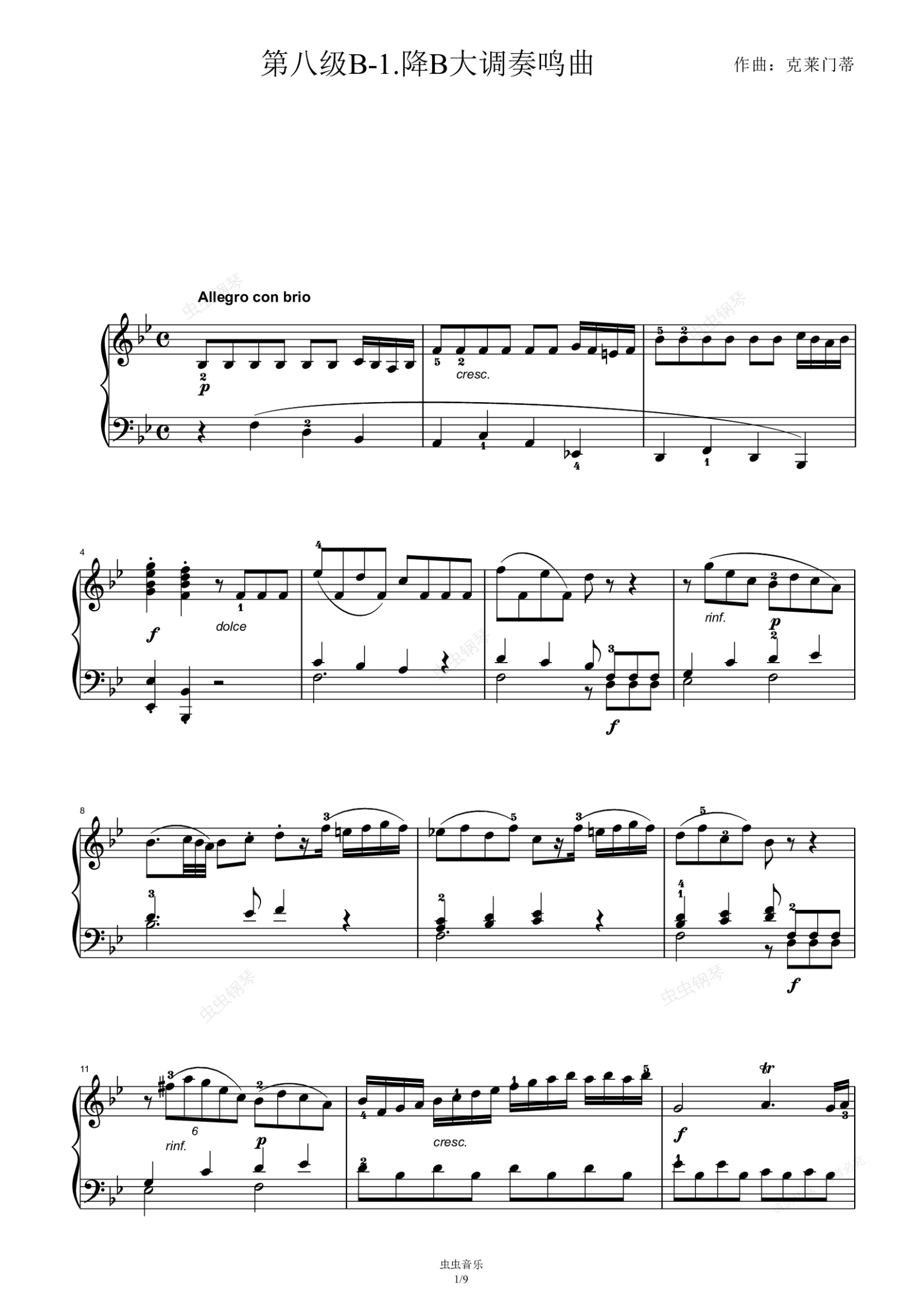 钢琴谱:第八级B-1.降B大调奏鸣曲