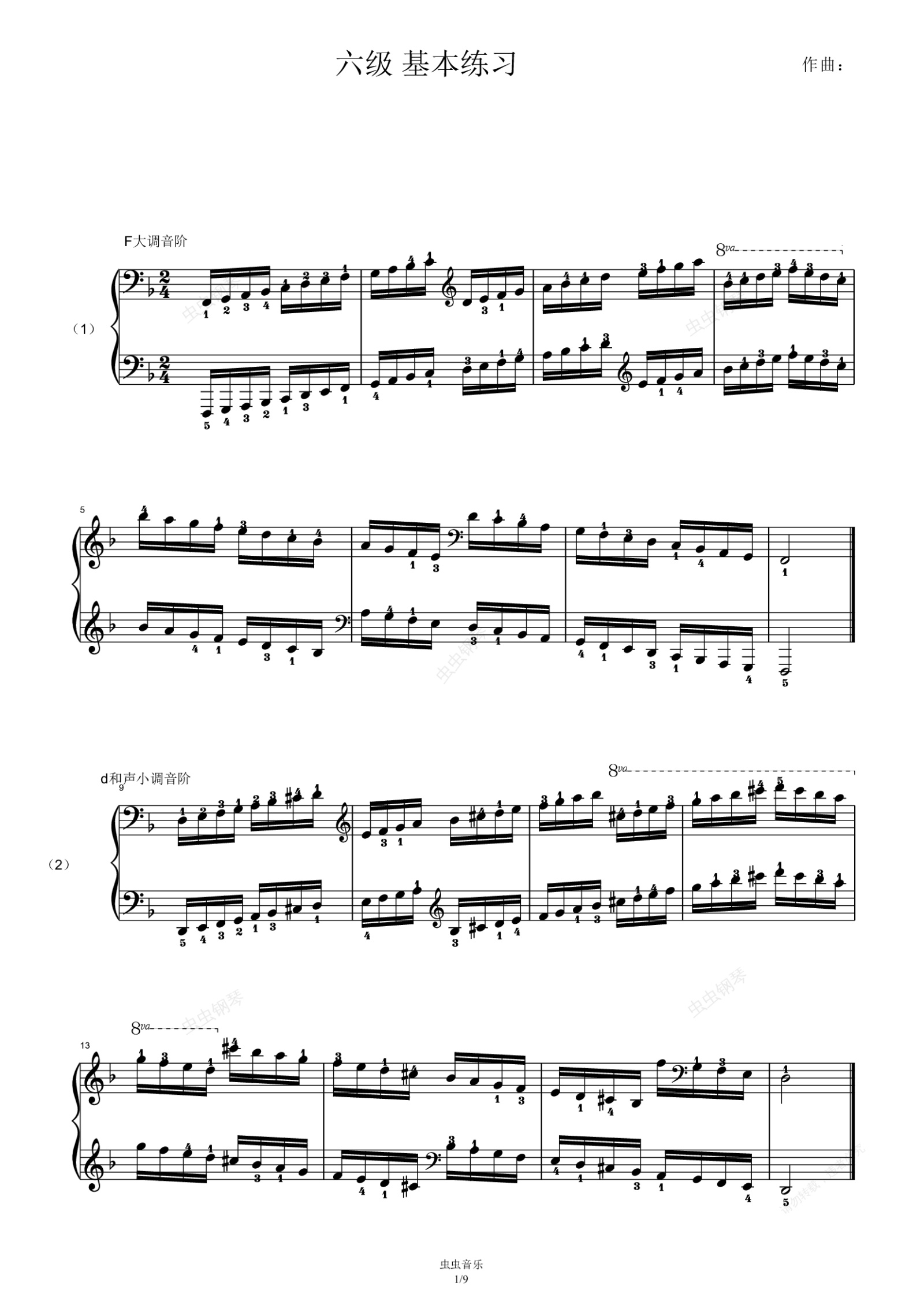钢琴谱:六级 基本练习