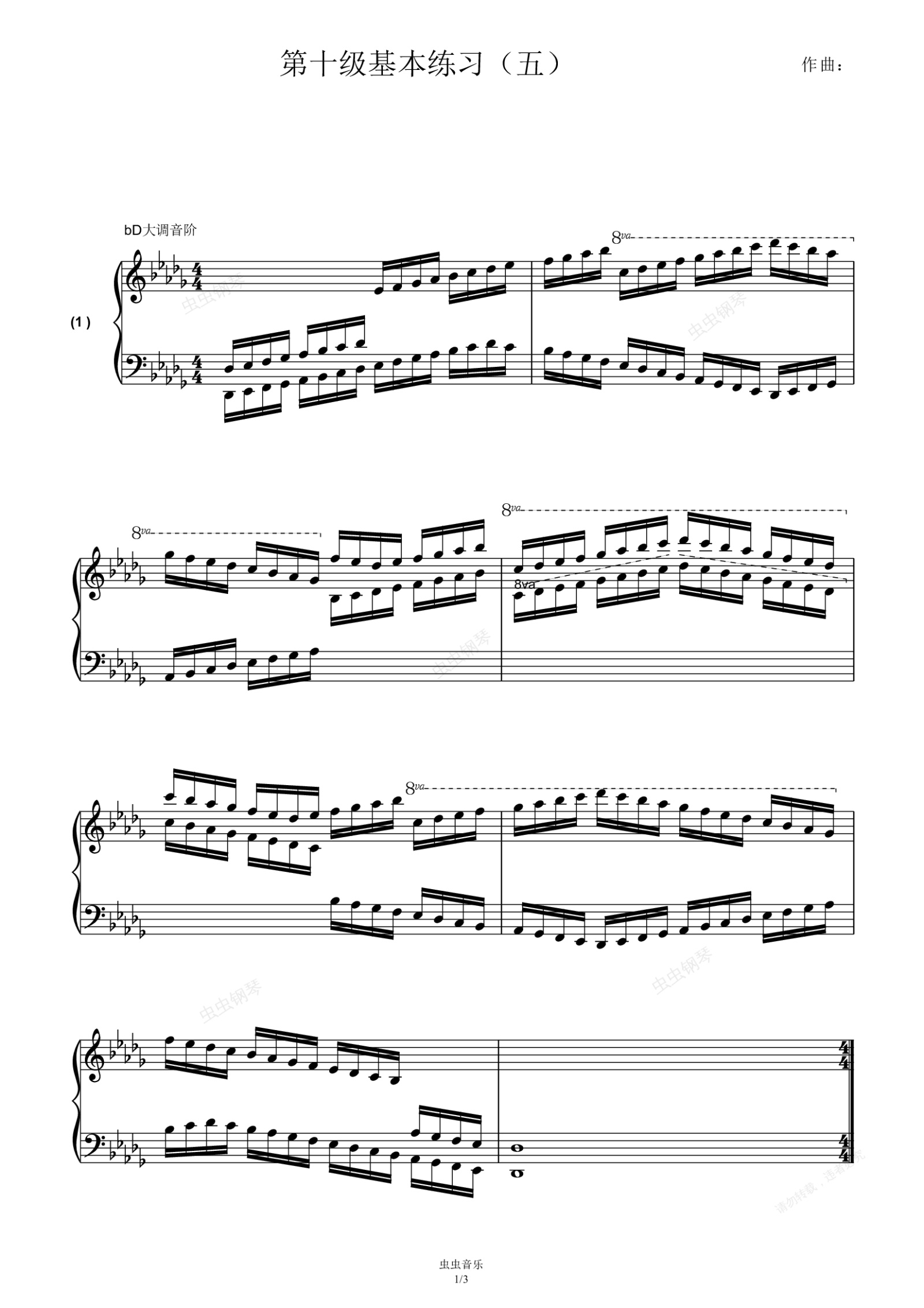 钢琴谱:第十级基本练习(五)