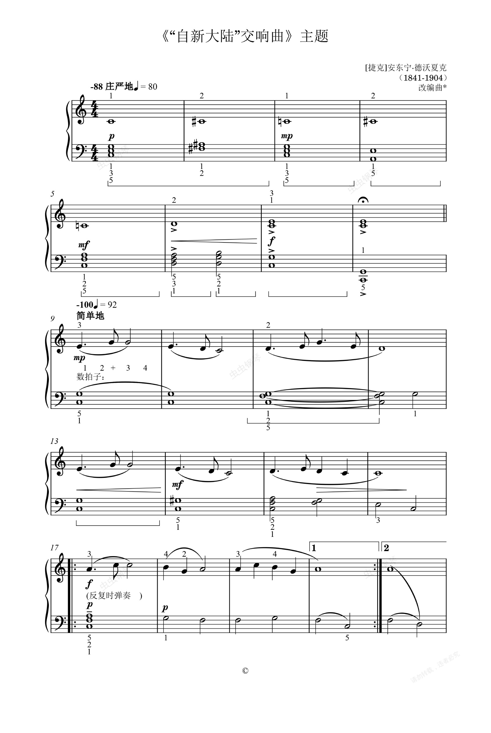 钢琴谱:单元九 《“自新大陆”交响曲》主题