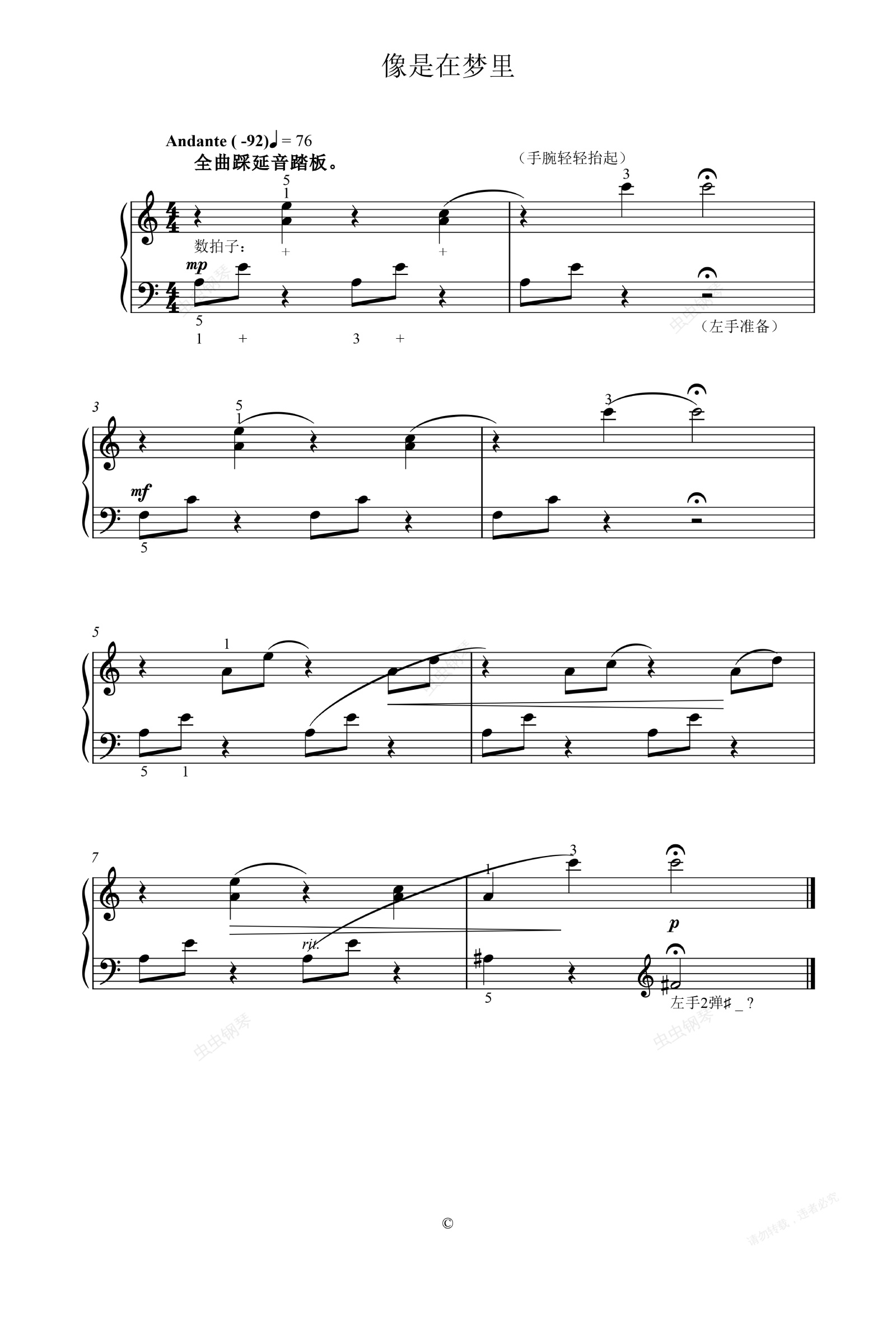 钢琴谱:单元一 像是在梦里